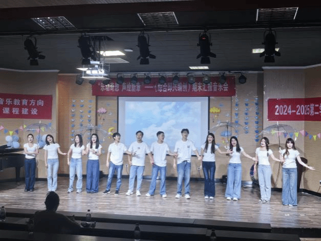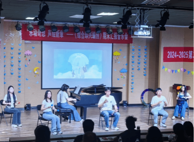 本场音乐会依托全国艺术专业学位研究生教育指导委员会于2022年4月公布的“艺术硕士音乐教育方向研究生协作类核心示例课程:《综合即兴编创》(艺教指委[2022]4号)”,进行课程建设成果汇报,课程负责人为音乐教育系副主任林沛蕾老师。本次音乐会的举办方式与传统模式有所不同,融入了人工智能技术辅助的短视频创作、趣味性采访拍摄以及多媒体元素的穿插,赋予了音乐会更多的趣味性和创新精神。从音乐会的策划、节目编排、排练、调整直至幕后工作,均由学生团队在教师指导下独立完成,这一过程充分体现了“翻转课堂”教学理念的实践。自课程建设以来的两年多时间里,学生们积极利用音乐教育与电子音乐专业的特长,将音乐理论与实践紧密结合,致力于探索符合新课程标准的音乐教育新路径。