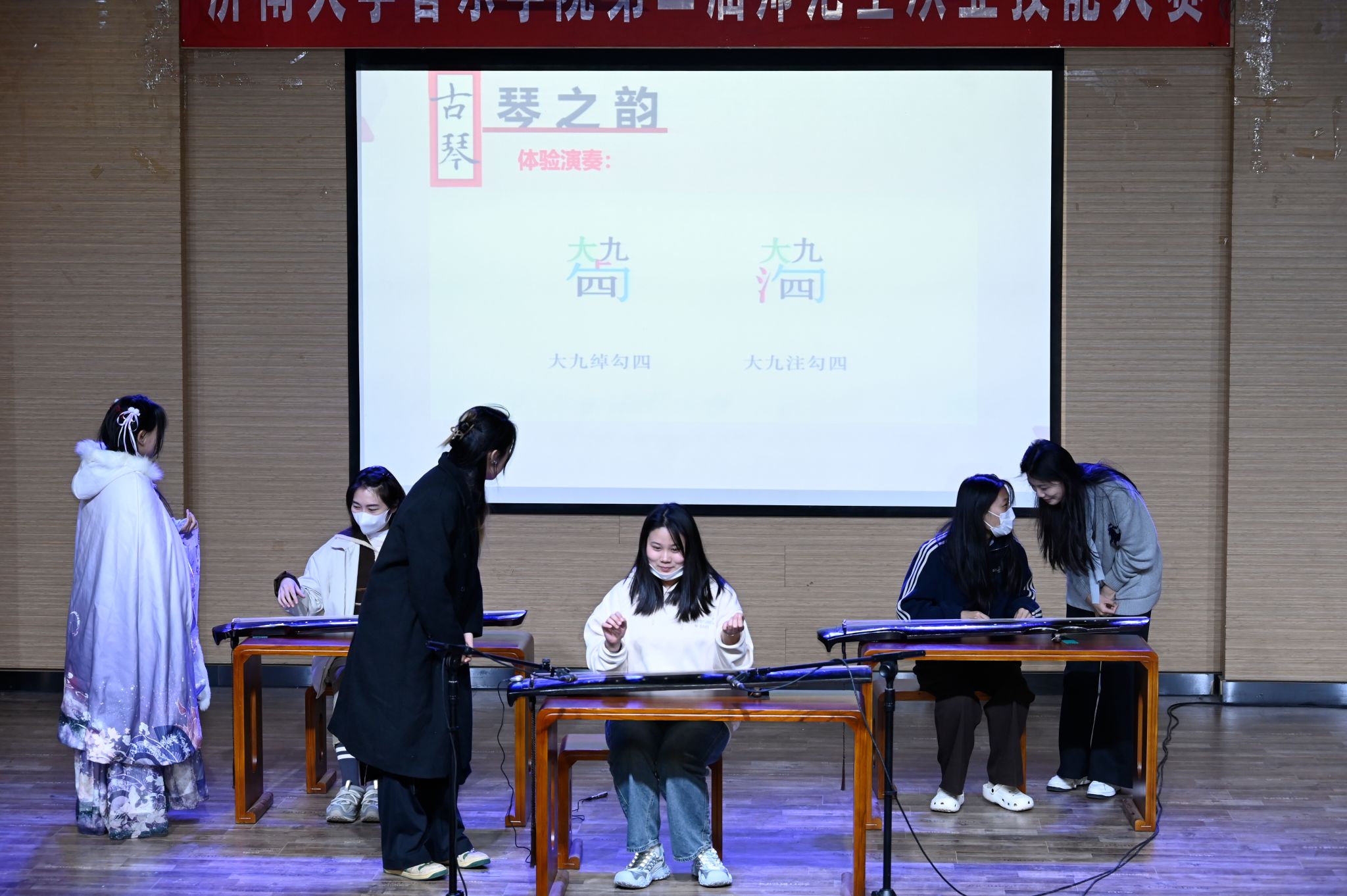 2025年4月2日,齐鲁音乐文化讲坛2025年第一期——”古琴之器与技”主题讲座在2教101成功举行,奏响了学校美育新乐章。此次讲座由济南市非物质文化遗产古琴斫制技艺代表性传承人李科担任主讲,张馨怡、薛英和郭玉芬老师的独奏、李艺馨和袁亦木的合奏倾情加盟,共同为观众奉献了美育盛宴。来自ok138cn太阳集团529、马克思主义学院、文旅学院、文学院、国际交流学院、外国语学院等学院的师生聆听了讲座,为此次音乐讲坛会增添了更多美育色彩。