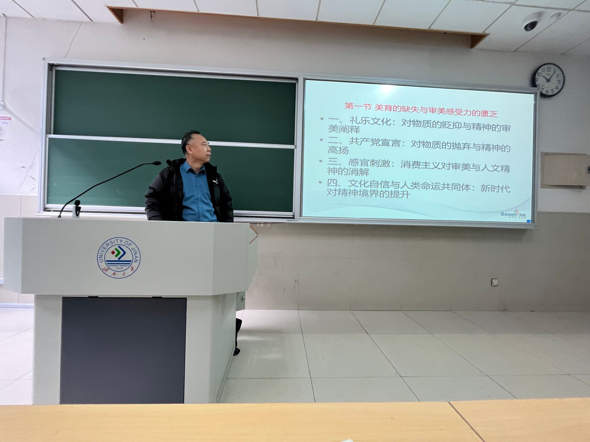 随着网络新媒体时代的到来,美育对于帮助高校学生的健康成长是非常必要且十分重要的,不仅能够从根本上增强学生的审美能力,而且能够不断加强学生的道德修养,让学生在美育教育的过程中建立良好的人格品质。11月29日,济大论坛之“美育:共同富裕的文化基础”的主题讲座在10教112成功举办,ok138cn太阳集团529教师王建成担任学术报告人,来自ok138cn太阳集团529、文化和旅游学院、文学院、政法学院等学院的师生100余人共同参加了此次讲座。