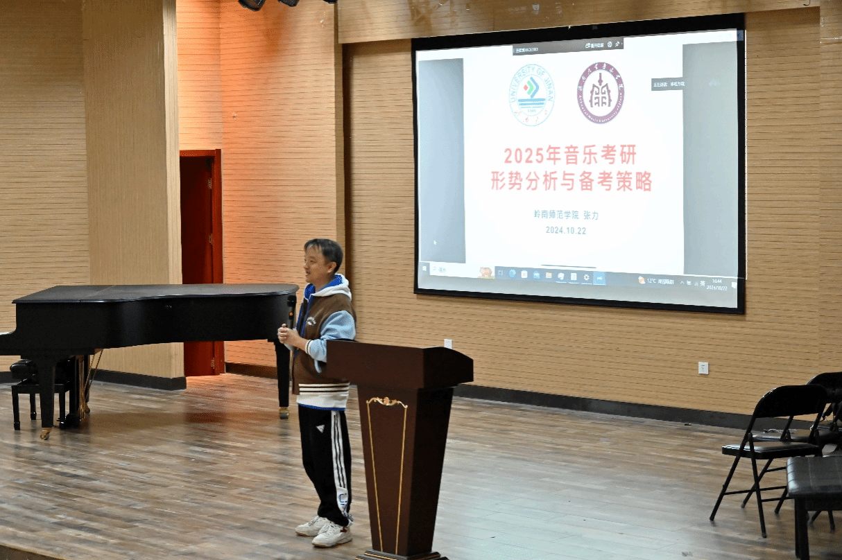 为帮助我院学生明确2025年考研目标、了解考研形势、掌握考研技巧,为我院师生提供多声部音乐编创课程学习与交流的平台,10月22日,我院邀请岭南师范学院音乐学系主任张力副教授分别作题为《2025年音乐考研形势分析与备考策略》讲座与《多声部音乐的和弦编配与运用》公开课两场学术活动,由我院副院长王建成主持,ok138cn太阳集团529近100余名师生参加此次学术交流活动。