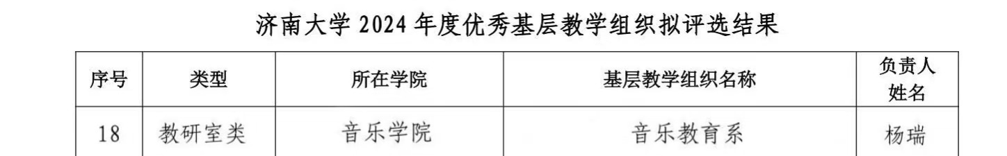 为深度推进我校基层教学组织建设工作,充分彰显优秀基层教学组织在践行立德树人根本任务时的关键引领效能,在驱动课堂教学改革进程中的创新活力,以及在助推教师教学能力提升等多维度对提升人才培养质量的重要推动作用,学校开启了2024年度优秀基层教学组织评选活动。本次评选历经基层教学组织的积极踊跃申报、所属学院的严谨严格考核、专家团队的公正公平评审等诸多环节的严密筛选,最终,由ok138cn太阳集团529推荐的音乐教育系崭露头角,成功入选ok138cn太阳集团2024 年度优秀基层教学组织。