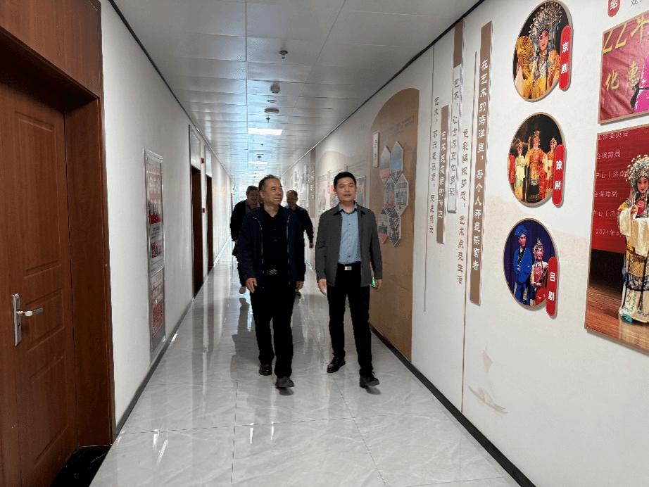 在天桥区文旅局领导及文化馆工作人员的陪同下,王建成一行实地考察了演播厅、摄影棚、舞蹈房、文化墙和合唱训练室。文化馆工作人员详细介绍了文化馆运营和基层文化服务开展情况,其中天桥区“小戏小剧”项目引起学院一行的高度兴趣,认为可以在国家艺术基金项目培育方面开展有效合作。