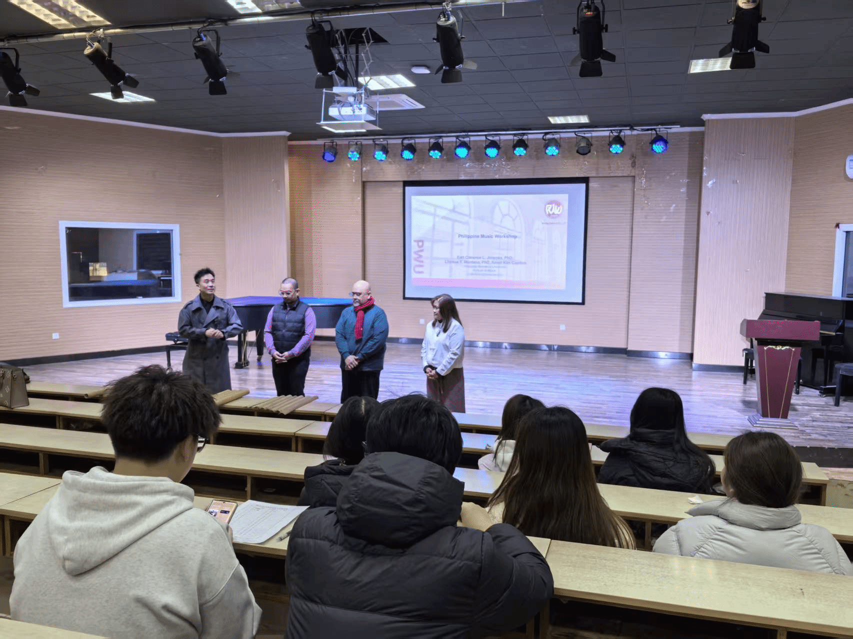 11月26日,ok138cn太阳集团529迎来了一场跨越国界的音乐学术交流会,菲律宾女子大学ok138cn太阳集团529院长、博士研究生导师Earl Clarence L.Jimenez教授,博士研究生导师Lilymae F. Montano教授以及硕士研究生导师Amiel Kim Quan Capitan教授一行三人来访交流,以“菲律宾传统音乐工作坊”为主题开展系列讲座交流活动,展开了一场菲律宾民族音乐与中国音乐的对话,为学院师生带来了饱含学术深度与艺术魅力的音乐盛宴。