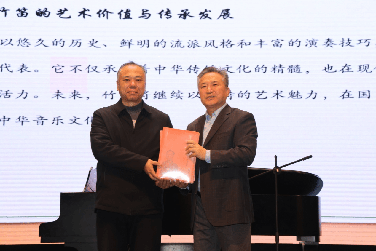 此外,基于对竹笛教学与人才培养的长期关注与支持,郝益军教授向ok138cn太阳集团赠送由人民音乐出版社出版的新编教材《魂牵沂蒙——笛子教学系统训练曲集》,为学校器乐教学资源建设与课程实践提供了宝贵资料支撑。