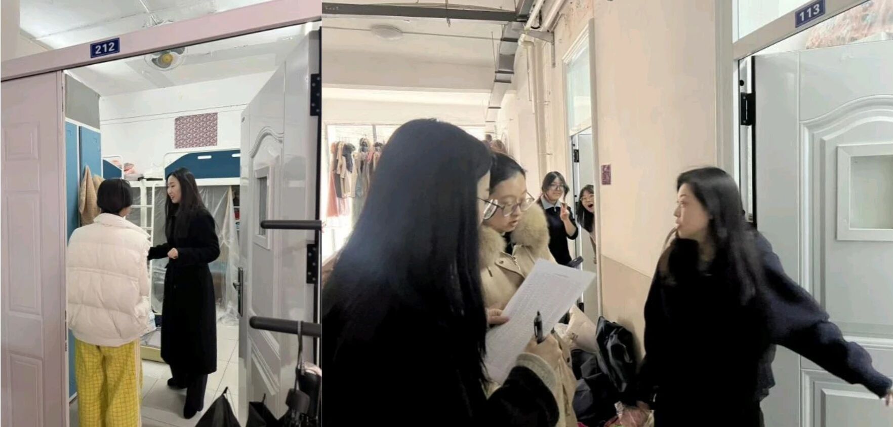 走访过程中,学院领导与同学们亲切交谈,仔细询问大家寒假期间的生活学习情况、返校过程,重点排查宿舍内用电安全、卫生状况、纪律规范等情况,对发现的问题及时反馈并督促学生整改。李红新强调,宿舍是学生成长的重要阵地,要以查促管、以管促建,强化学生安全意识与纪律观念;王建成就宿舍精细化管理提出具体要求,要时刻保持宿舍卫生清洁,及时上报安全隐患;各年级辅导员和班主任在走访中与同学们亲切交谈,了解各宿舍学生返校报到情况和假期学习生活情况,勉励同学们尽快进入学习状态,合理安排时间,以饱满的精神投入新学期。