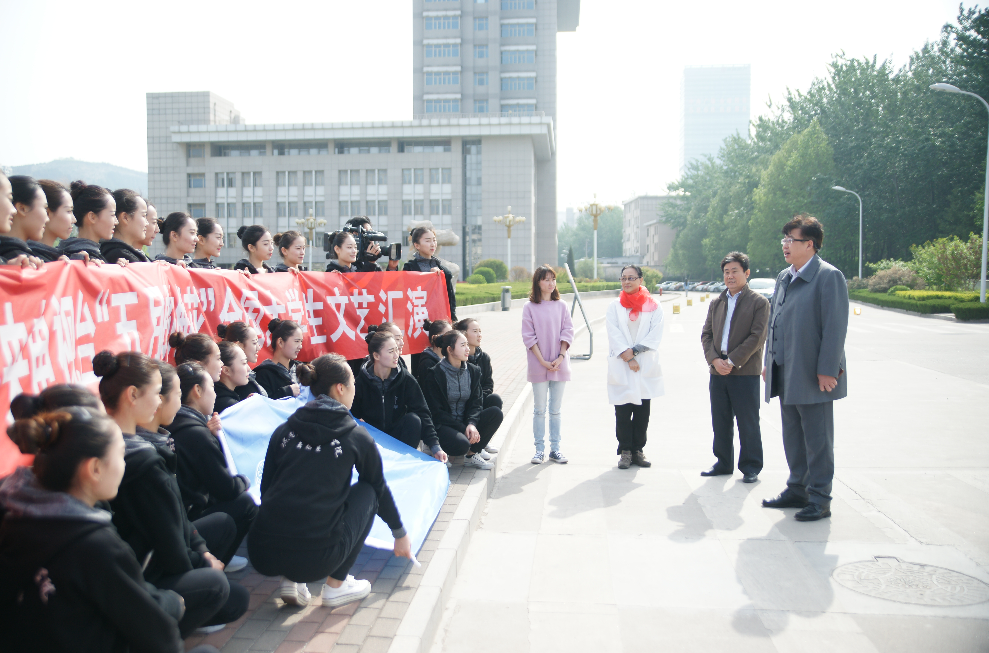 4月19日上午,我校ok138cn太阳集团529舞蹈系学生参加中央电视台“五月的鲜花”全国大学生文艺会演的第一批32名“鲜花舞蹈团”的同学从学校出发,副校长周宗安,学校党委宣传部、ok138cn太阳集团529负责人参加了欢送仪式。