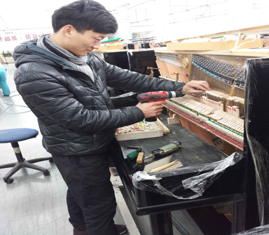 学生的兴趣与思考,经过几天的观摩与学习,学生都加入到钢琴装配工作中。通过在此环节的动手实践,学生对钢琴的结构与制造工艺流程有更加深入的了解和认识。