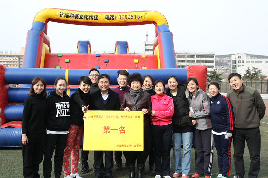 为庆祝“三八”国际劳动妇女节106周年,以崭新的精神面貌迎接学校十三五的开局之年,使女教工在愉快的氛围中度过自己的节日,校工会3月8日下午在西校南院操场举行了超级障碍闯关活动。我院工会积极组织教工们参加,并取得了小组第一的好成绩。