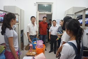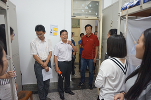 9月4日下午,为了欢迎2015级新生的到来,让学生们尽快适应大学生活,感受到家的温暖。ok138cn太阳集团529领导冒着大雨深入学生宿舍亲切看望2015级新生。