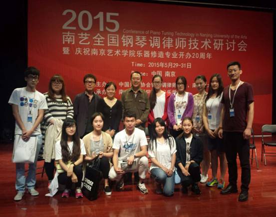 2015年5月29日至31日,由中国乐器协会钢琴调律师分会、南京艺术学院共同主办的2015南京艺术学院全国钢琴调律师技术研讨会在南京顺利召开。中国乐器协会常务副理事长曾泽民先生、中国乐器协会钢琴调律师分会会长冯高昆先生、国家钢琴调律师资格考试委员会成员(凯撒堡钢琴原技术总监)程柏青先生以及来自全国各地区、高等院校的150余名钢琴调律师、钢琴技师参加了此次会议。我院青年教师齐丽花带领乐器修缮专业学生一行13人参加此次技术研讨活动。
