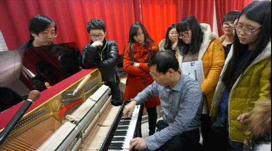 2014年12月15日,中国乐器协会钢琴调律师分会副会长、国家职业资格资考委委员、长春大学ok138cn太阳集团529王文琦教授来我院进行学术交流。在此次交流中,王文琦教授就我院乐器修缮(钢琴调律)方向的建设和培养提出了中肯的建议。