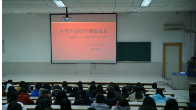 正值国家“两会”胜利召开之际,为贯彻党的十八大精神,提高青年团员的党性意识,3月17日晚,ok138cn太阳集团529在二教101教室举行了学习十八大精神专题报告会即《在党的指引下成长——党的十八大精神宣讲·大学生版》观影活动。本次活动由ok138cn太阳集团529团委举办,院团委书记高学德与全院同学们一起观看了十八大专题影片。