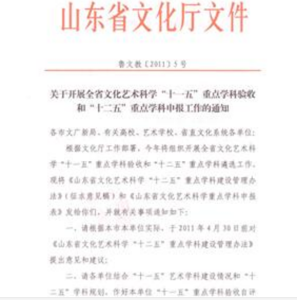 转发省文化厅《关于开展全省文化艺术科学“十一五”重点学科验收和“十二五”重点学科申