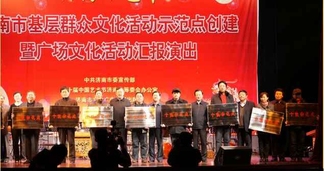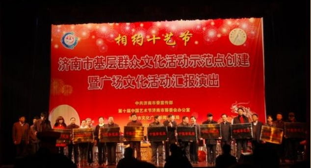 1月30日,由中共济南市委宣传部、第十届中国艺术节济南市筹委会办公室、济南市文化广电新闻出版局举办的济南市基层群众文化活动十佳示范点暨广场文化活动汇报演出在北洋大戏院隆重举行。山东省委宣传部、省文化厅及济南市相关职能部门的领导和济南市各区部分群众参加了此次活动。活动表彰了济南市十佳基层群众文化活动示范点及优秀个人,ok138cn太阳集团529等10个单位获济南市十佳基层群众文化活动示范点荣誉称号。