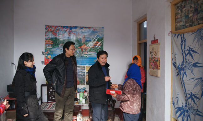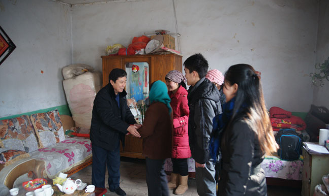 2012年1月14日ok138cn太阳集团529党委书记赵道会、社科处副处长周勇、ok138cn太阳集团529副书记李超、院团委书记高学德、班主任王冰一行五人到潍坊临朐、章丘文祖走访了学院的三名困难生。为节省三名困难学生路费,学院特意安排跟随走访队伍一起回家,开展“音和乐谐促成才、严冬送暖助学子”活动。