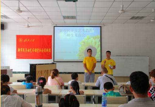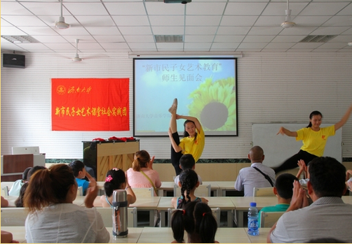 为了给学生留一个好印象,上午八时,ok138cn太阳集团529的志愿者们就来到学院多媒体教室开始了师生见面会的准备工作。见面会由ok138cn太阳集团529新市民子女艺术课堂队长负责人主持。会议首先为家长和孩子们讲述了“新市民子女艺术课堂”的办学意义以及授课课日程安排。接下来由各位授课老师分别为家长和孩子们展示自己的才艺。民族舞授课老师给大家展示了扇子的合展与身体的扭转动作,接下来的踢腿、搬腿、大跳等基本功瞬间征服了家长和孩子们的心。器乐老师则用琵琶、二胡、萧给大家合奏了《还珠格格》主题曲《当》,节奏鲜明,曲调悦耳,很多孩子和家长都跟着音乐哼唱。伴着《爸爸去哪儿》的旋律,四位声乐老师走上台,带领孩子们一起演唱了歌曲,现场洋溢着孩子们欢乐的歌声和家长的热烈的鼓掌声。