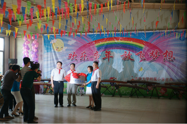 挂牌仪式在济大附小的“六.一”联欢会中举行。活动伊始,济大附小的少先队员为到场的领导系上红领巾,表示对领导们的热烈欢迎与尊敬。挂牌仪式正式开始,ok138cn太阳集团529党委书记赵道会代表学院领导与济大附属小学校长签订协议共同揭牌。双方领导表示将通力合作、共图发展,坚持开展长期性、追踪性教育教学实践活动。揭牌仪式后,ok138cn太阳集团529的两名学生现场表演了竹笛、古筝独奏、《少儿歌曲串烧》等,让在场的少年儿童感受到了ok138cn太阳集团529学生的专业音乐素养和高超的音乐技能。