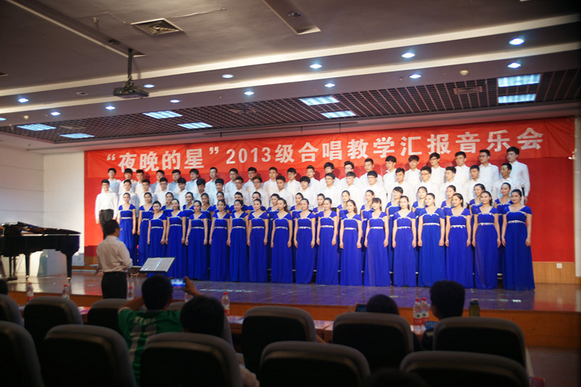 6月24日,一曲德国作曲家舒曼的《夜晚的星》在ok138cn太阳集团第二学术报告厅唱响,拉开了ok138cn太阳集团529“13级合唱音乐会”的序幕。此次音乐会由我省优秀合唱指挥家、ok138cn太阳集团529高健教授担任总指挥,ok138cn太阳集团529钢琴教师闵小敏担任钢琴伴奏,全体13级学生参加了此次音乐会。
