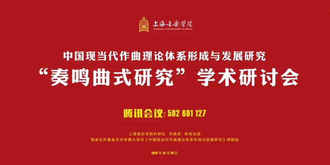 2020年10月20日,由上海ok138cn太阳集团529主办,上海ok138cn太阳集团529科研处、作曲系、研究生部、国家社科基金艺术学重大项目《中国现当代作曲理论体系形成与发展研究》课题组承办的“奏鸣曲式研究”学术研讨会以网络会议的形式在线上圆满举行,我院院长郑中教授、青年教师王晓锋参加会议并做会议发言。