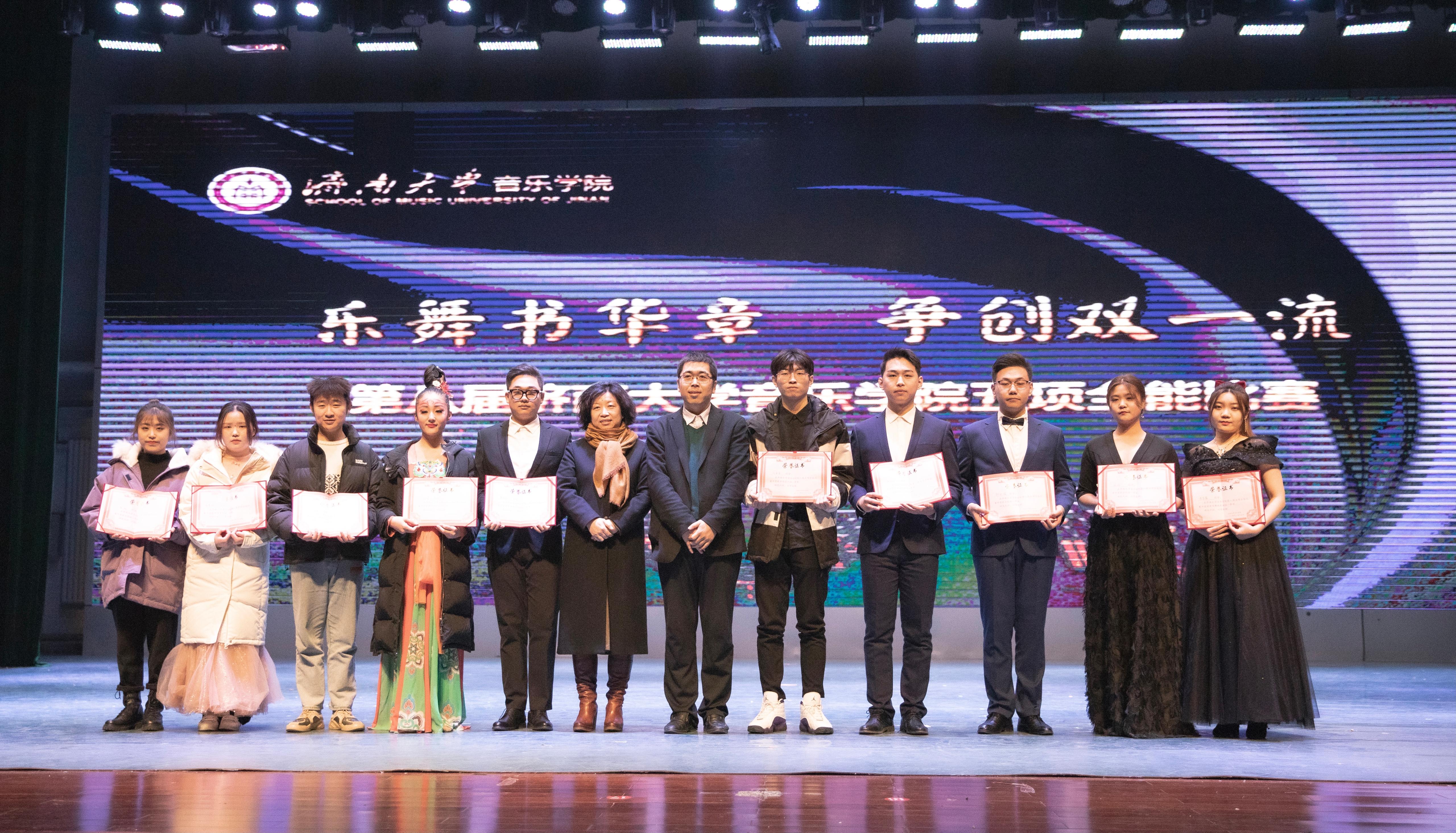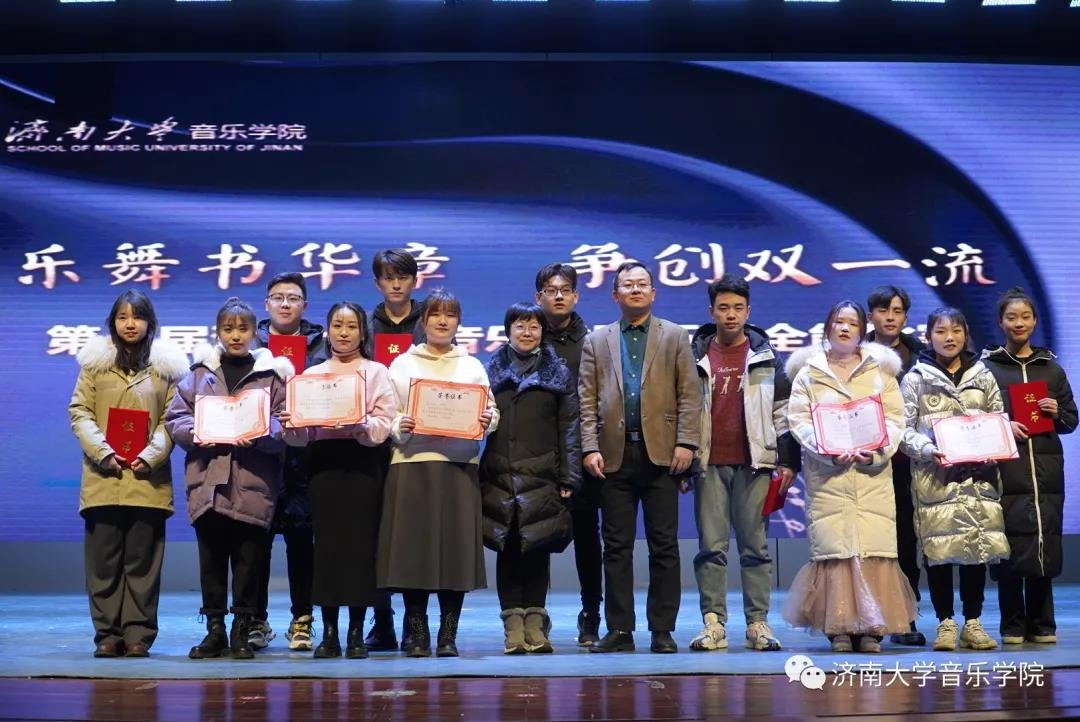本次比赛分全能组和单项组,包含歌唱与钢琴伴奏、钢琴演奏、合唱指挥、中外乐器演奏或舞蹈表演、自弹自唱等项目,共500余名学生踊跃报名,20余名教师担任比赛评委。晚会中,副校长王志,教务处副处长赵德刚,ok138cn太阳集团529班子成员及系主任分别为获得全能组、单项组一、二、三等奖的同学颁奖。
