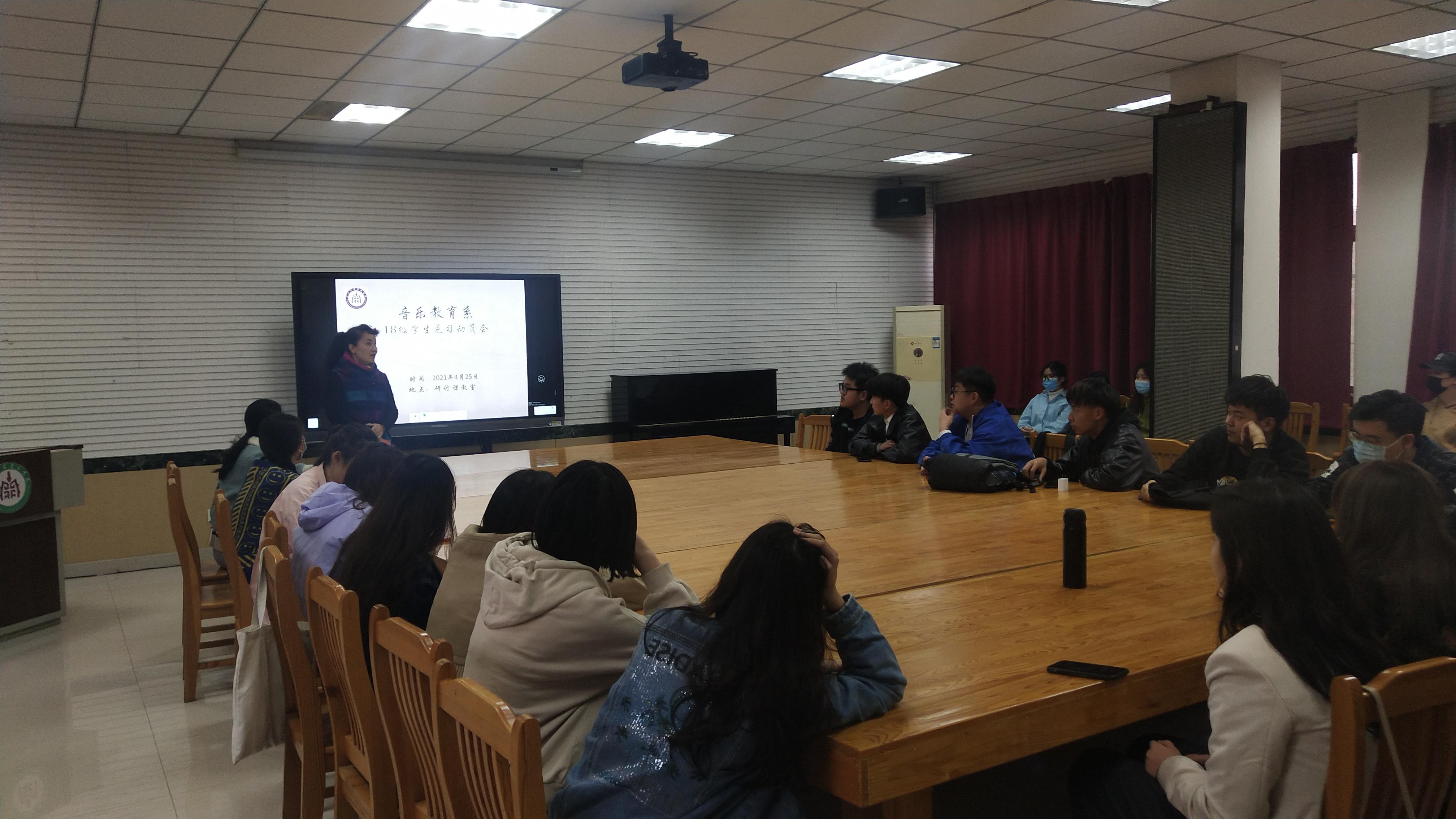 4月25日下午,ok138cn太阳集团529音乐教育系在研讨课第一教室召开2018级学生见习动员大会,会议由音乐教育系主任杨瑞教授主持,2018级音乐教育系全体学生参加了此次动员会。