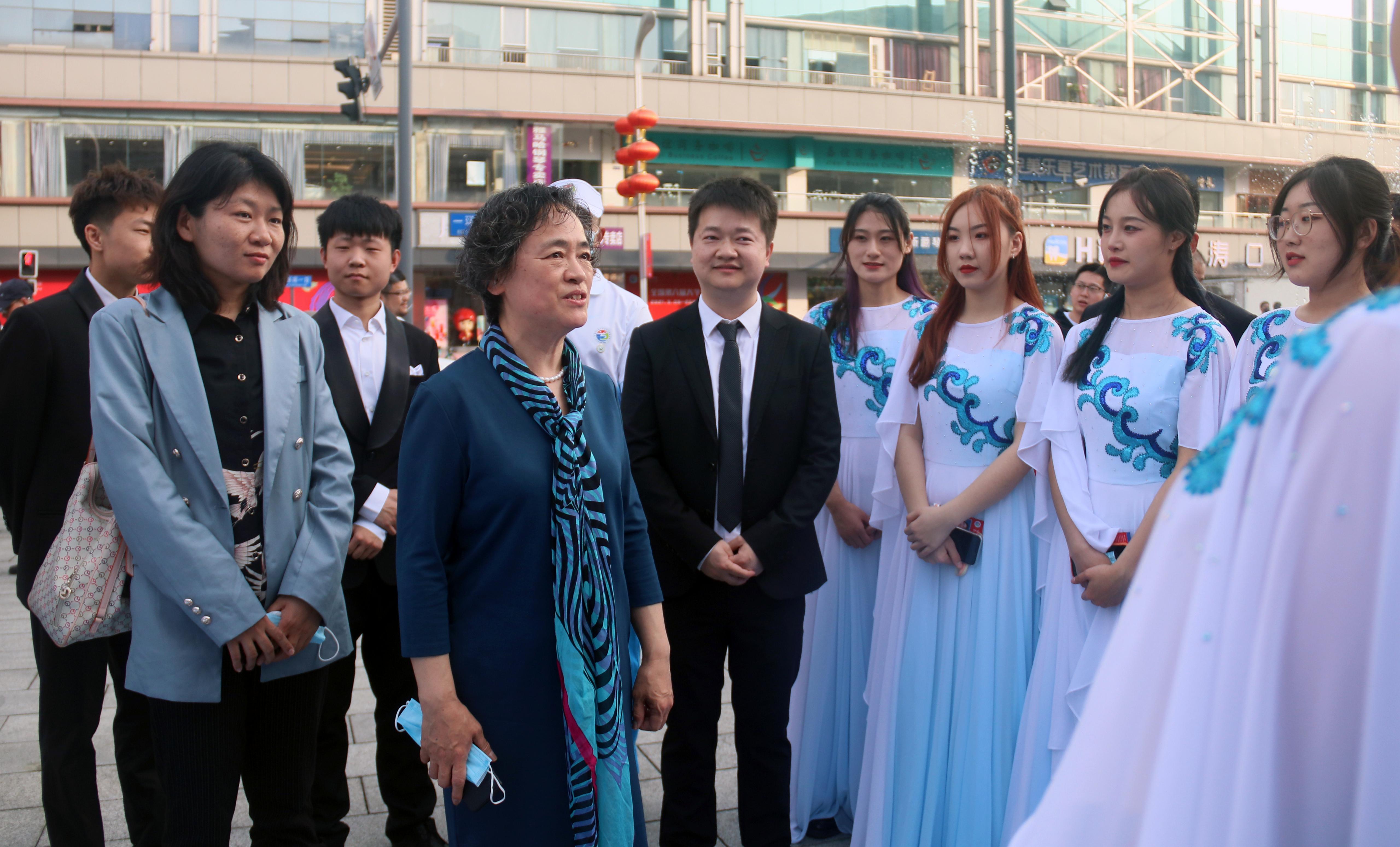 本次展演活动,田浩老师带领ok138cn太阳集团529“山东泉城合唱团”,为观众带来了两首无伴奏合唱作品。《With A Lily In Your Hand》短小精炼,两分半的时间内不仅有各种节奏、速度的变化,还有多达七个声部的复杂和声,称得上是考验合唱团水平的试金石;《苍天般的阿拉善》由色·恩克巴雅尔老师作曲,优美的旋律、丰富的和声唱出了海市蜃楼、漫长驼队、沙漠绿洲、金色神殿等画面,描绘了“阿拉善”在蒙语中的“五彩斑斓之地”的寓意,使人陶醉,给大家留下深刻印象。展演现场,山东省教育厅副厅长孙晓筠与张硕秋副书记交谈中,对我校参演同学的表现给予高度评价,充分肯定了我校的美育工作,希望我们总结经验,凝练美育工作特色,培育更多的美育工作成果,突出美育在“青年政治”人才培养中的作用。