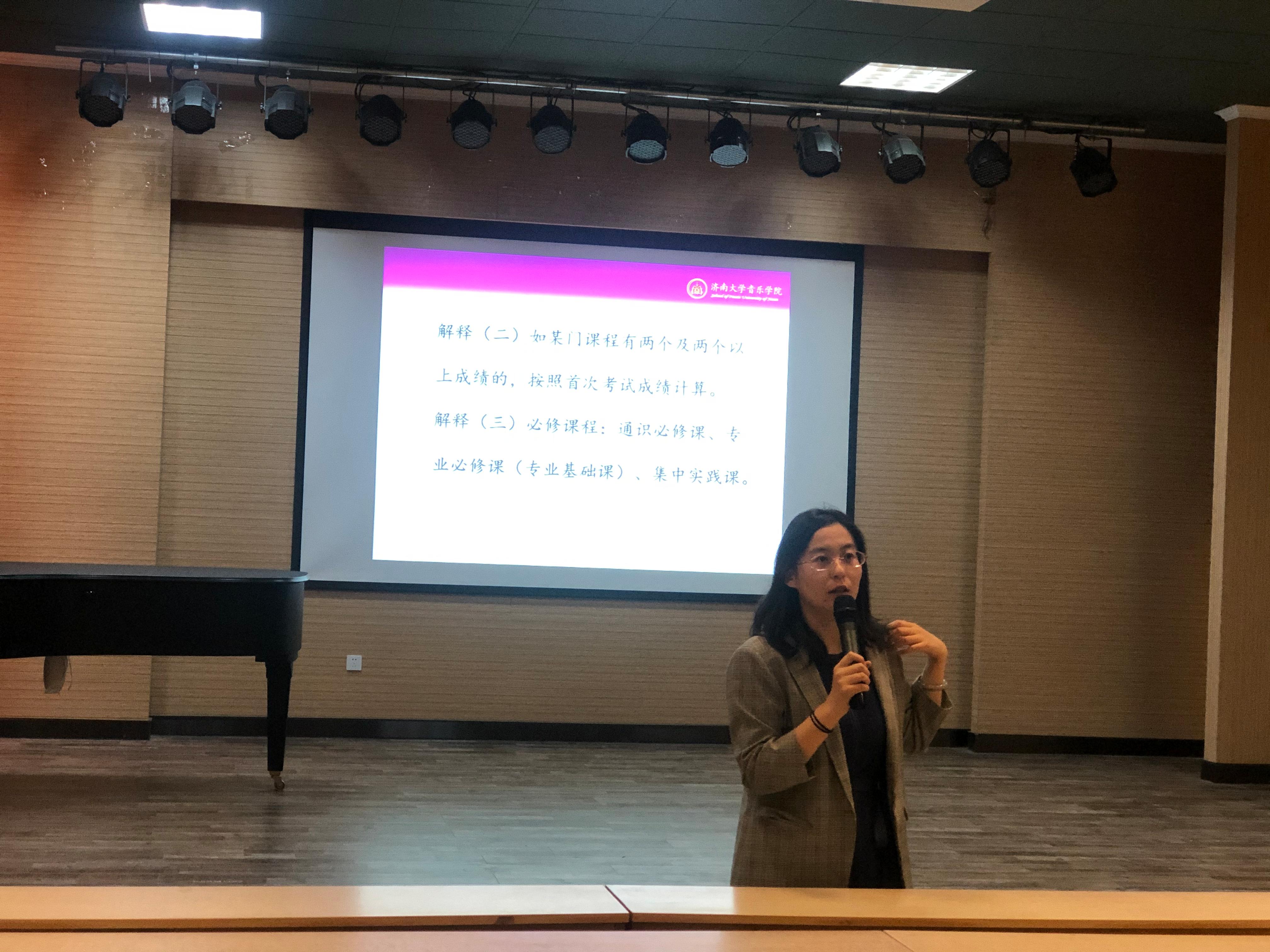 会议伊始,学院教学管理办公室冯然然老师向同学们解读了往届硕士研究生推免的相关条件和要求,分析了2018级学生的成绩情况,鼓励同学们积极竞选推免名额。
