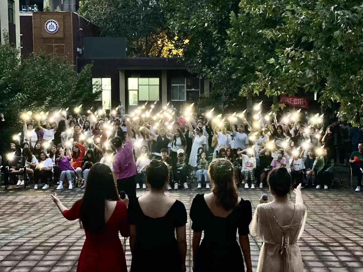晚会最后,音教系的同学带来女生合唱《灯火里的中国》。“灯火里的中国,青春婀娜;灯火里的中国,胸怀辽阔”,美妙的歌声咏颂着青年一代对祖国的深切热爱。皎洁的月色下,伴随着温暖的旋律,台下同学们一同挥舞着手中的手机,用点点星光照亮了夜晚的舞台,歌声回荡在中庭,让人久久难以忘怀。伴随着这美妙的音乐,晚会逐渐进入尾声。
