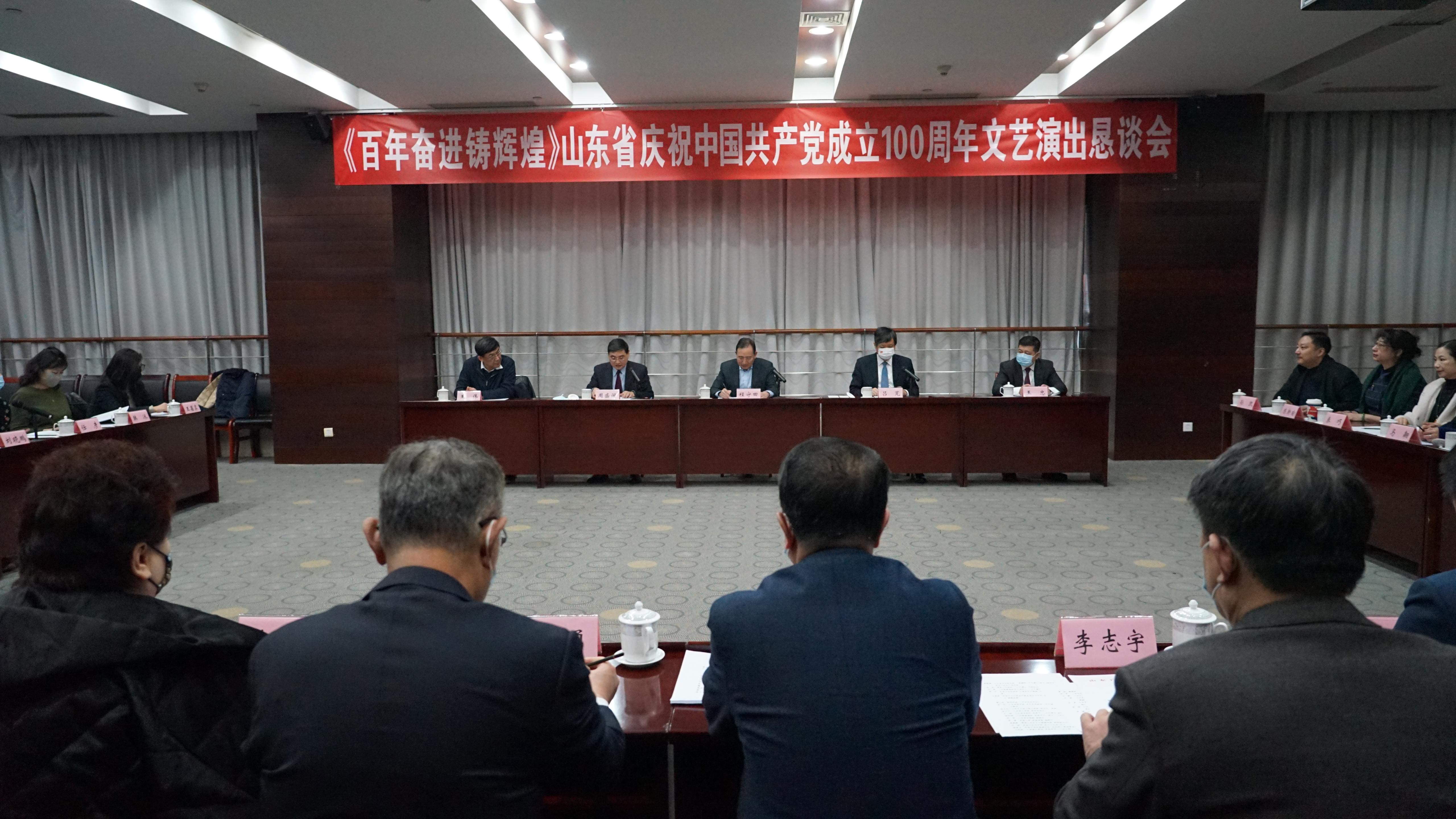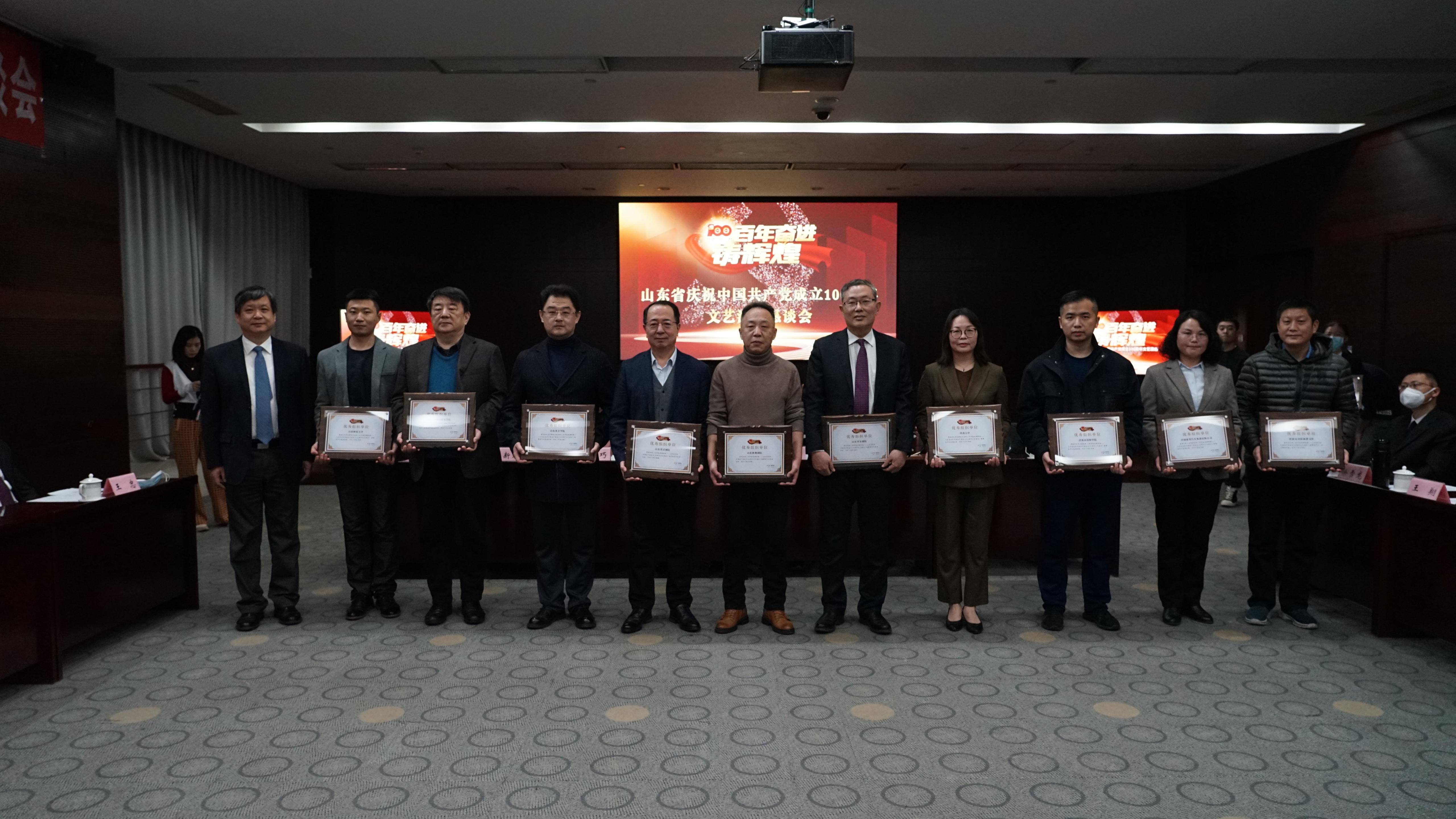 1月25日上午,《百年奋进铸辉煌》——山东省庆祝中国共产党成立100周年文艺演出恳谈会在山东广播电视台举行。省委宣传部副部长、省电影局局长程守田出席会议并讲话,省委宣传部文艺处处长、一级调研员王伟,山东广播电视台党委书记、台长吕芃,以及来自省内13家高校和单位的主创代表、组织单位代表等出席会议。我校党委常委、副校长张勇,ok138cn太阳集团529相关人员受邀参加会议。会上对参加文艺演出的单位和主创代表进行了表彰,我校获得“优秀组织单位”荣誉称号,我院舞蹈系主任王海潮副教授获得“优秀主创”荣誉称号。