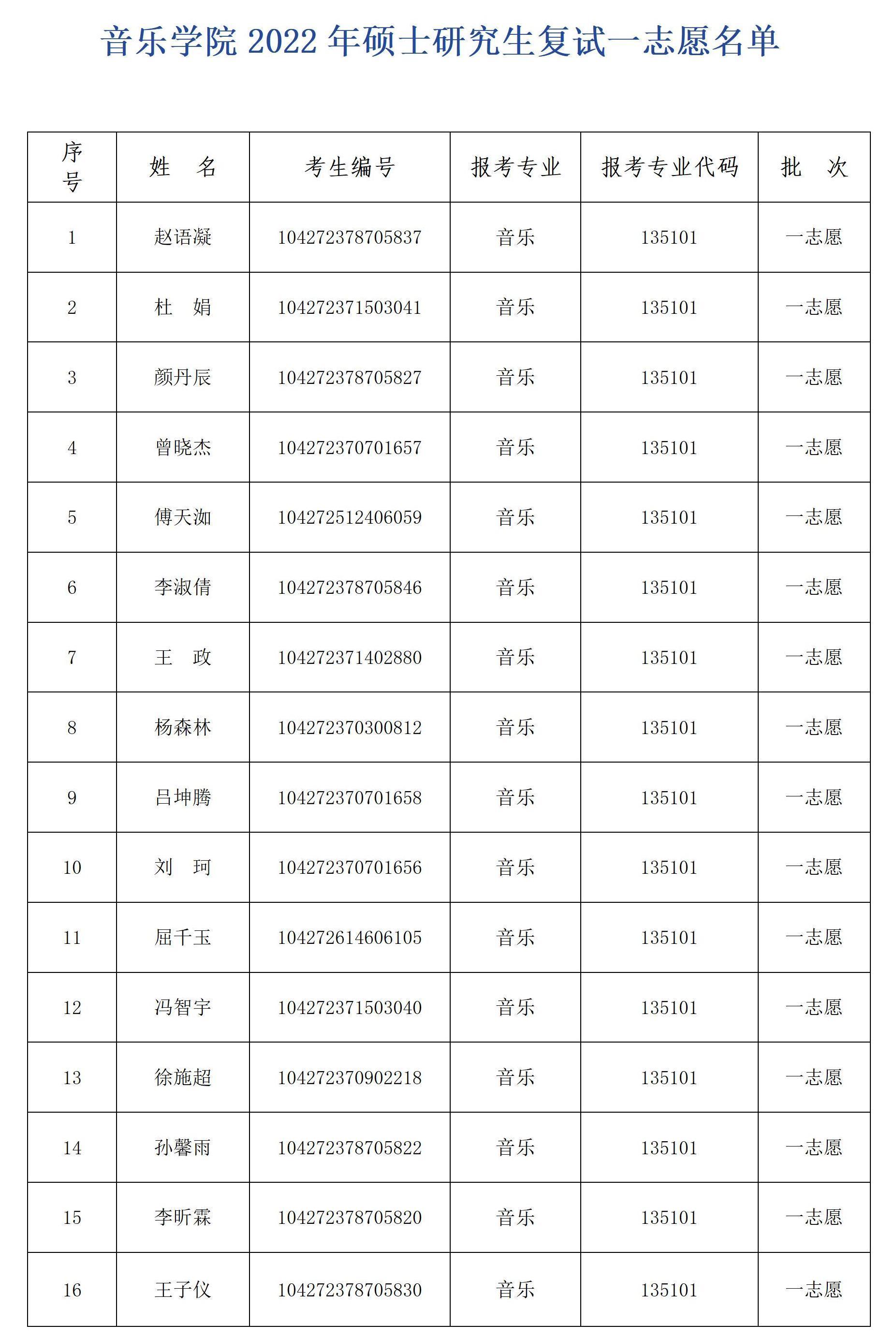 ok138cn太阳集团5292022年硕士研究生复试一志愿名单