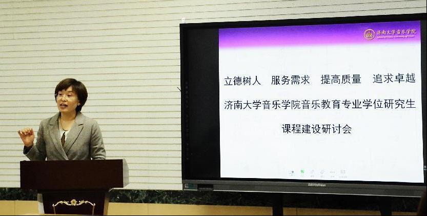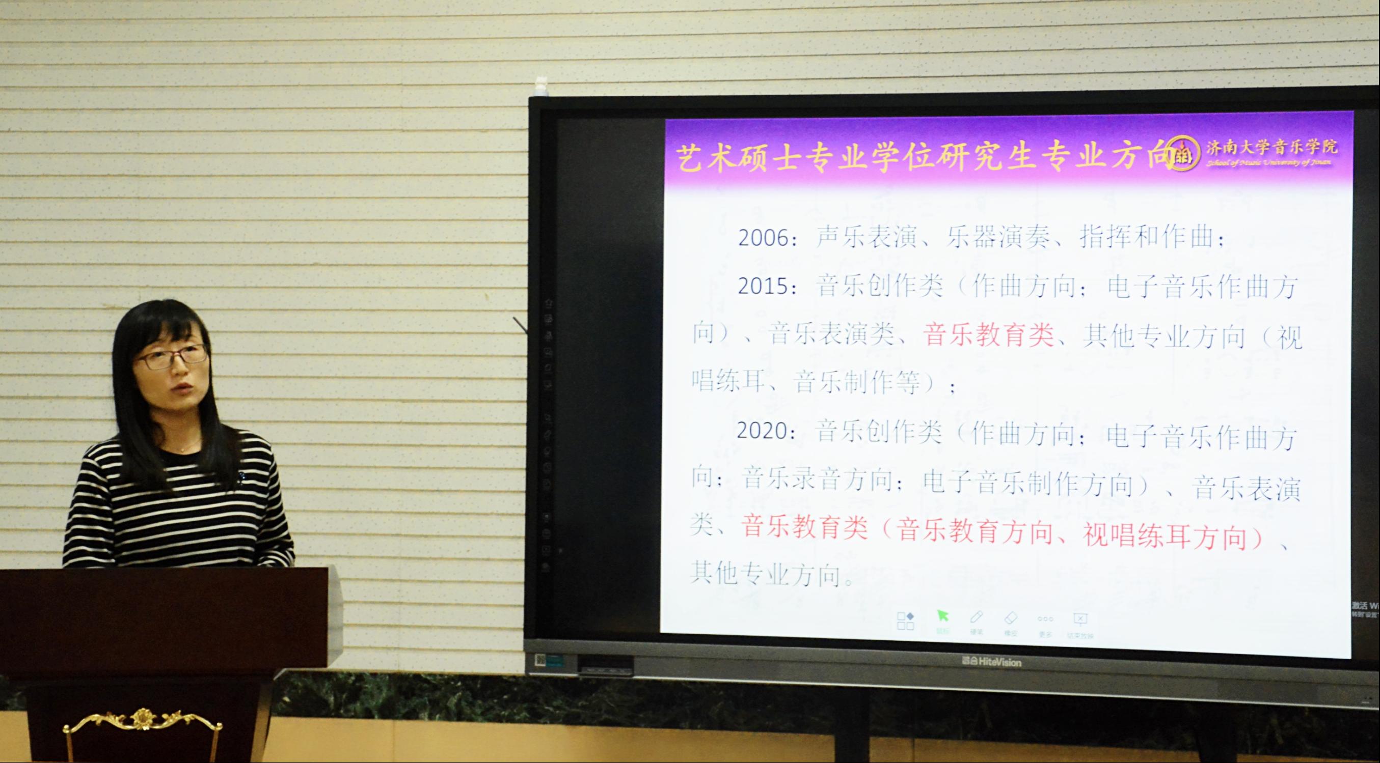 接下来,齐丽花老师以《明晰人才培养目标 着力教学实践能力提升——ok138cn太阳集团529艺术专业硕士人才培养》为题,总结回顾了ok138cn太阳集团529艺术硕士人才培养的发展历程,并从全国音乐教育专业发展的现状入手,强调音乐教育专业学位研究生应该具备的能力素质,进而提出加强协作类课程、开放性实践课程、人文素养课程及美育课程等课程建设,将是学院下一步提升音乐教育专业人才培养质量的重点所在。