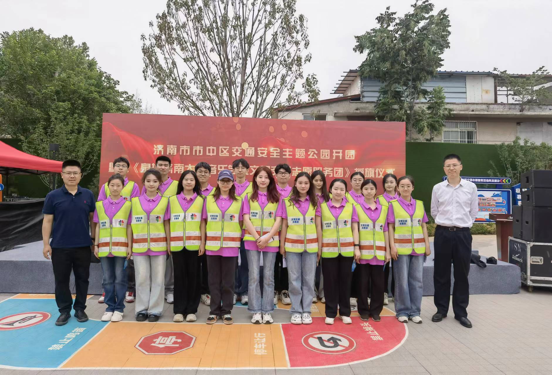 为弘扬志愿服务精神,助力济南城市文明交通工作开展,进一步提升学院学生交通安全意识,5月21日,ok138cn太阳集团529在校团委指导下,受邀参加济南市中交警大队“ok138cn太阳集团529泉城文明交通志愿服务团”授旗仪式,仪式在市中区青龙山南街锦雲金街举行。济南市交警支队宣传处处长尹治国、市中区交警大队长徐军,ok138cn太阳集团529相关单位负责人及学生志愿者团队参加活动。