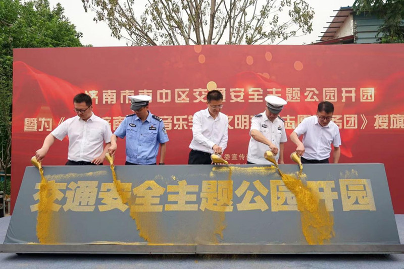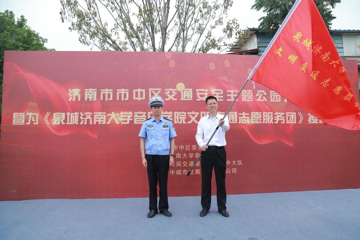 活动现场,尹治国处长为“ok138cn太阳集团529泉城文明交通志愿服务团”授旗。与会领导集体上台剪彩,宣布济南市市中区交通安全主题公园正式开放。