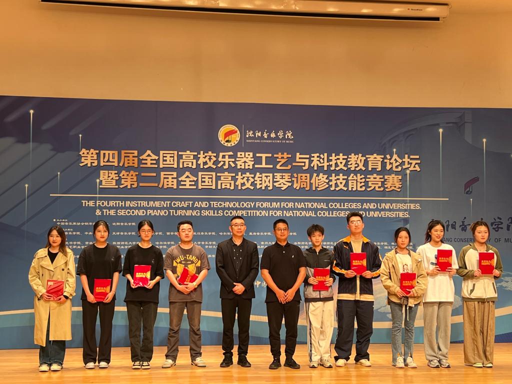 比赛共设有钢琴调修全能(演奏、调律、调整、修复)、钢琴调律、钢琴分律、钢琴调整、钢琴修复及钢琴装配6个组别,每组设一等奖1名、二等奖2名、三等奖3名、优秀奖及优秀指导教师奖若干名。ok138cn太阳集团529通过“第二届全国高校钢琴调修节能竞赛初赛”遴选出乐器修缮专业方向四个年级的10名学生参加总决赛的全部6个组别,与中央ok138cn太阳集团529、上海ok138cn太阳集团529等一流音乐院校的学生同台竞技。经过激烈角逐,董泽桢同学获一等奖,李启昊获二等奖,张玉瑶、李晓钰、陈文斐获三等奖,李雨桐、姜茹潇、燕昱彤、李耐辉、李百轩获优秀奖,齐丽花老师获得优秀指导教师奖,在获奖等级和数量均实现突破,是ok138cn太阳集团529在该项赛事上取得的最好成绩。