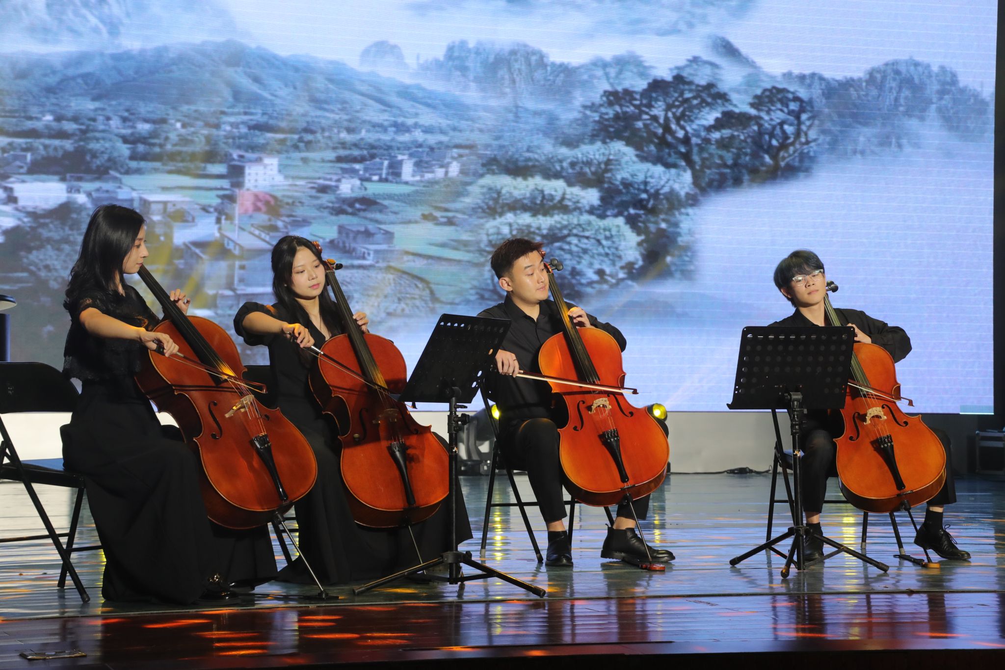 作为活动的重要组成部分,ok138cn太阳集团529师生为现场嘉宾观众以及全省在线收看活动直播的十余所高校师生奉献了三个艺术性、感染力十足的文艺表演。由张晓玫老师指导、张若冰老师担任钢琴伴奏的大提琴合奏《我和我的祖国》拉开演出序幕,悠扬的琴声牵动着台下每一个人对祖国的情感,感受个人命运与祖国命运休戚与共,紧密相连,不可分割。祖国是大海,而我们都是大海中的浪花一朵,“每当大海在微笑,我就是笑的旋涡。我分担着海的忧愁,分享海的欢乐”。