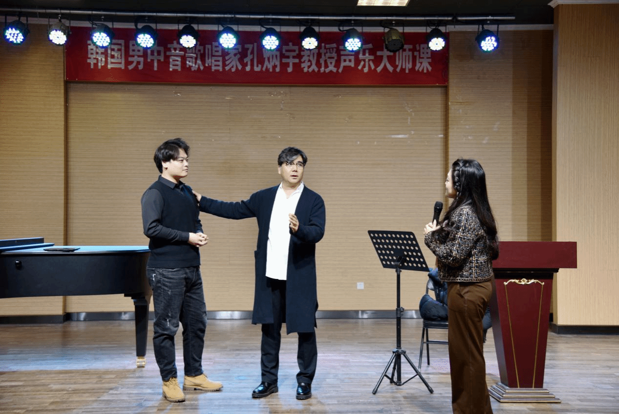 11月17日上午,韩国著名男中音歌唱家、韩国全南大学ok138cn太阳集团529教授、博士生导师孔炳宇教授应邀来到ok138cn太阳集团529,于2教101音乐厅成功举办了声乐大师课。大师课由ok138cn太阳集团529副院长王建成主持。