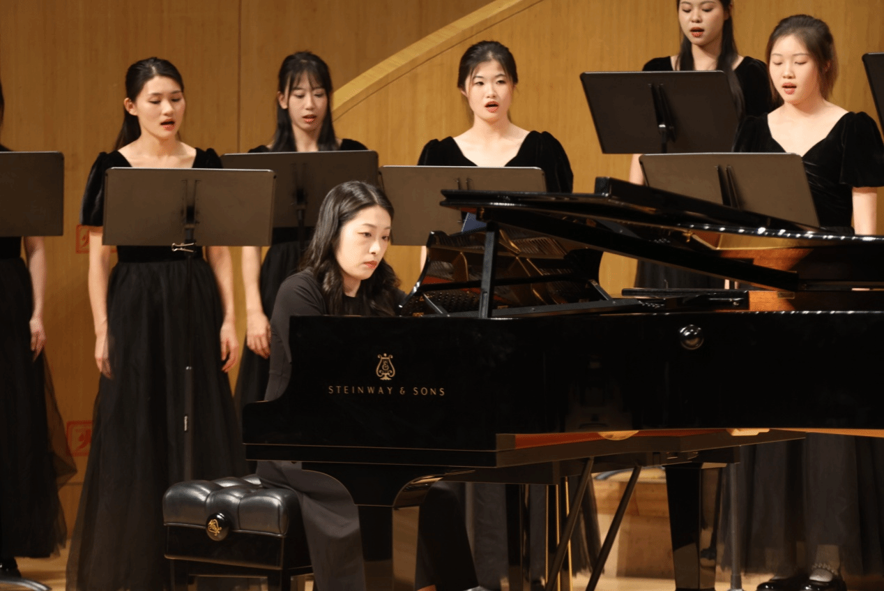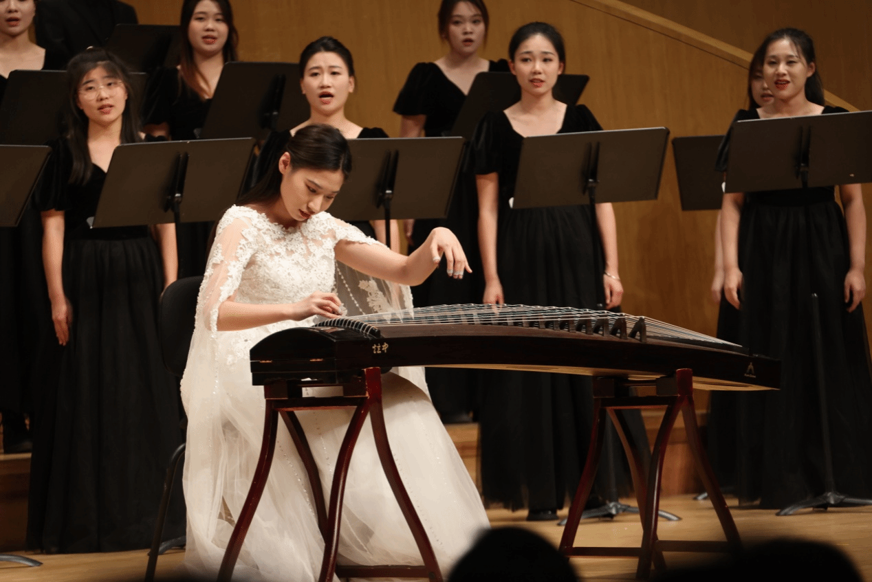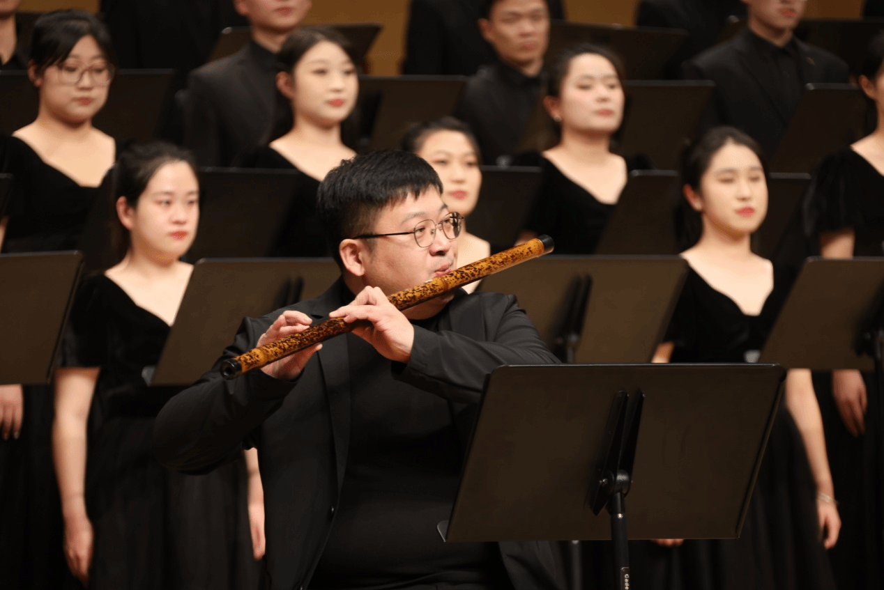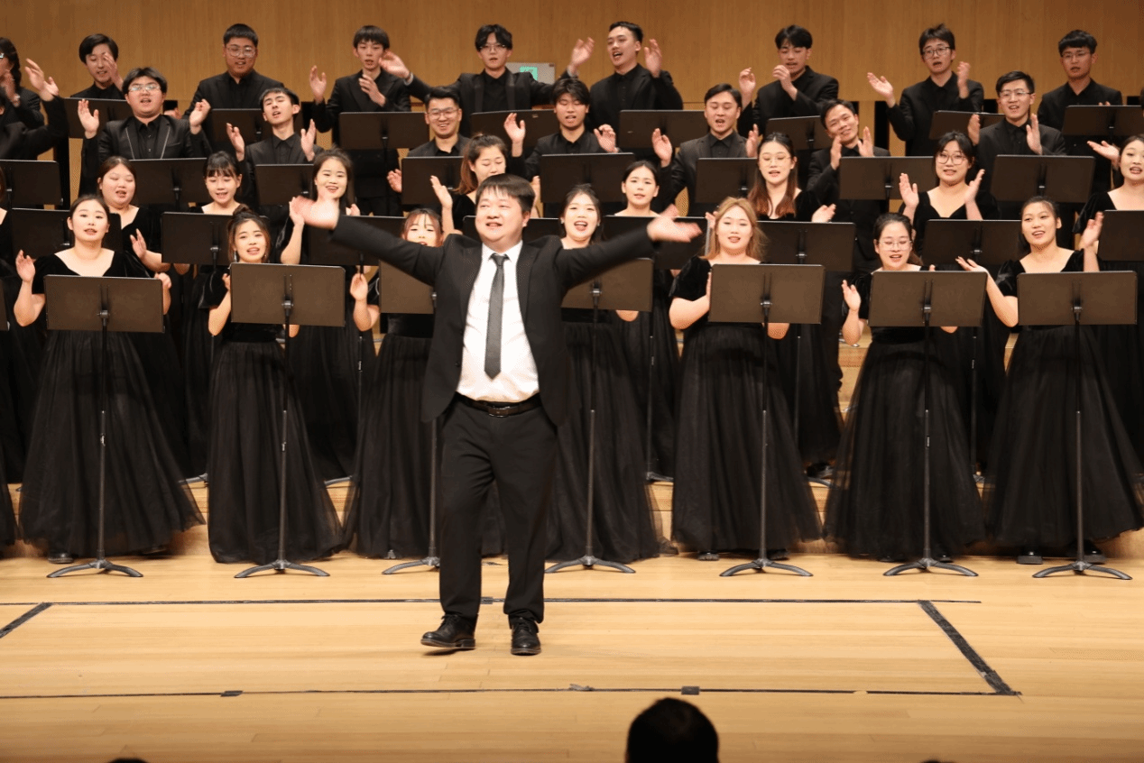 音符璀璨,岁月如歌。整个晚会精选16首优秀合唱作品,分为艺术合唱、古诗新韵、流行金曲、家国情怀四个段落依次呈现。在“艺术合唱”中,三首艺术歌曲《大豆白米花生》《云中来信》《哭泣的草原》被演绎得淋漓尽致,既展现了了运河文化与民族风情,又将大提琴的旋律有机融合在混声合唱里。在“古诗新韵”中,历经千百年的经典诗歌通过演员的吟唱再次让我们感受到了中华文化的独特魅力,ok138cn太阳集团529的师生们用合唱对经典诗词进行了审美阐释,长笛在《一剪梅-红藕香残玉簟秋》中如同天籁之音,音色清新脱俗;《醉花阴》让我们再次走进宋代女词人李清照的心灵世界,再现了相思与别愁的意象;《子衿》的浪漫气息充满了古典美的韵味,歌声展现了心中的渴望;《观沧海》则融合打击乐与多声部合唱,不仅展现了时不我待的紧迫感与共创一流的雄心壮志,更是借助合唱营造了意味隽永的意境。接下来的流行合唱将流行音乐的时尚元素融入多声部的编创,展现时尚灵动的气息和蓬勃向上的朝气,给人们带来全新的音乐体验。在“家国情怀”段落中,济大人歌以咏志,用《我站在铁索桥上》《沁园春·雪》《我的自白书》《我爱你,中国》《没有共产党就没有新中国》五首红色歌曲来缅怀革命前辈,传承红色文化,歌声中洋溢着对党的忠诚和对祖国的热爱。