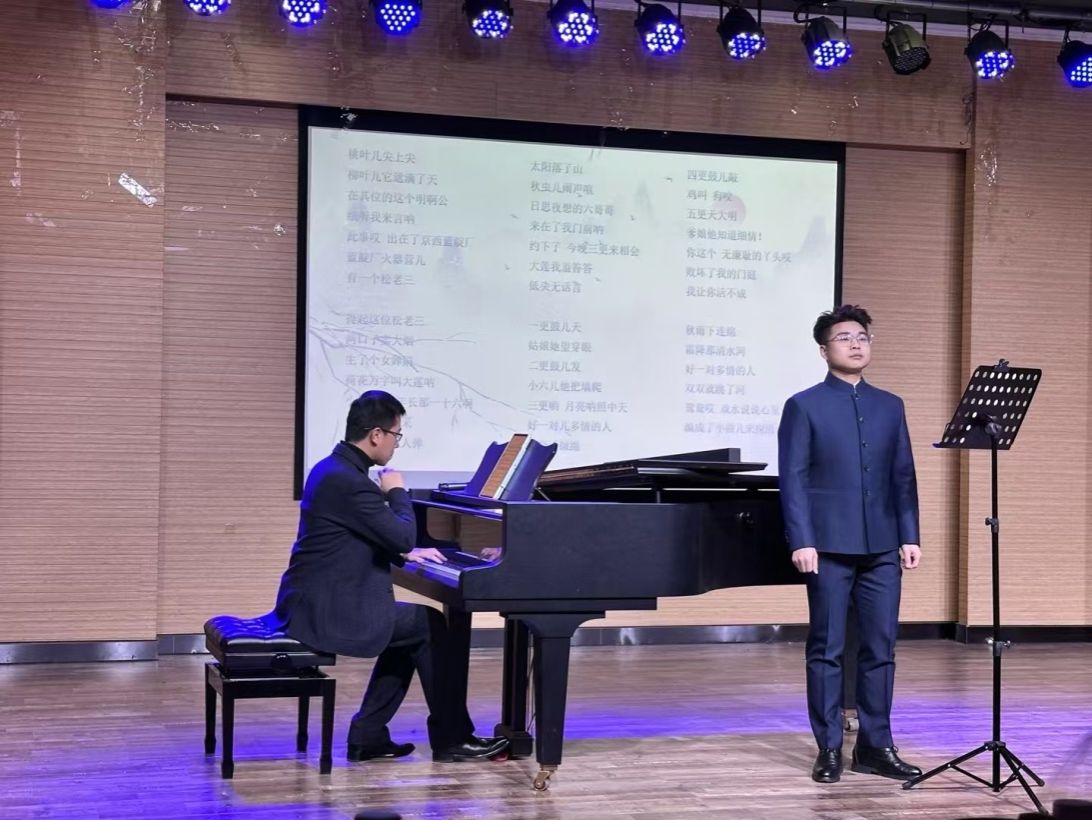 每一个音符的跳跃、每一句歌词的流淌,都蕴含着深厚的文化底蕴,引领观众步入一个诗意盎然、情感丰富的艺术殿堂。观众在沉浸于这场视听盛宴的同时,不仅领略到了音乐艺术的多元魅力,而且深刻感悟到了中国传统文化的博大精深。此次音乐会使音乐与文化的深度融合得到了全面而深刻的体现,艺术家们凭借卓越的技艺和深情的表达,将中国艺术歌曲的丰富意蕴与独特风采展现在观众眼前。未来,我院将继续坚守“以美育人、以文化人”的教育理念,不断推进美育与人文教育的深度融合,培养学生的审美情趣与文化修养,确保他们在掌握专业技能的同时,能够深入理解并传承中华优秀传统文化,通过将美育融入人才培养的各个环节,为社会输送更多德才兼备、综合素质出众的高素质人才。