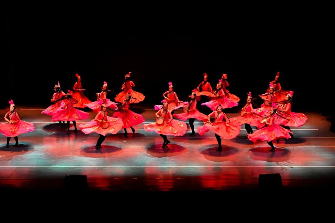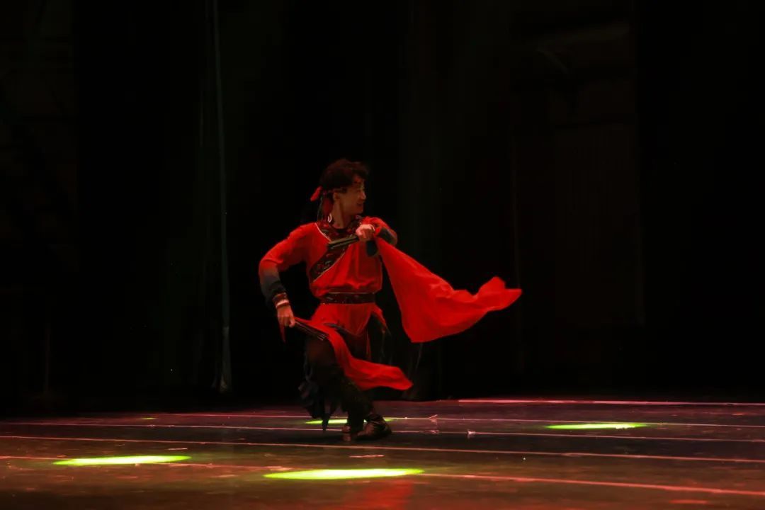 他们化身为草原上威风凛凛的狼群,身姿矫健而敏捷,气势雄浑而磅礴。以刚劲有力的动作诠释了狼的野性、团结与坚韧不拔。每一个舞步都传递着深沉而雄浑的精神力量,展现了2024级男生们塑造角色、营造氛围以及团队协作的能力,反映出学院在教学中对不同风格舞蹈的把握、团队舞蹈表现力培养等方面的成果,彰显出学生在舞台上强大的艺术感染力。