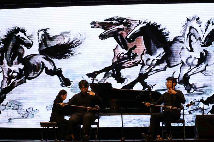 2014级音乐表演方向本科生、济南稼轩学校音乐教师李亮与黄艳、魏韶航联袂演出《越人歌》《两地曲》,巧妙融合多元音乐元素。2015级器乐表演方向本科生、2019级天津ok138cn太阳集团529研究生、山东英才学院音乐舞蹈学院青年教师杨宇晨与2024级器乐表演方向本科生安战二胡齐奏《赛马》,激昂有力的旋律感染观众。