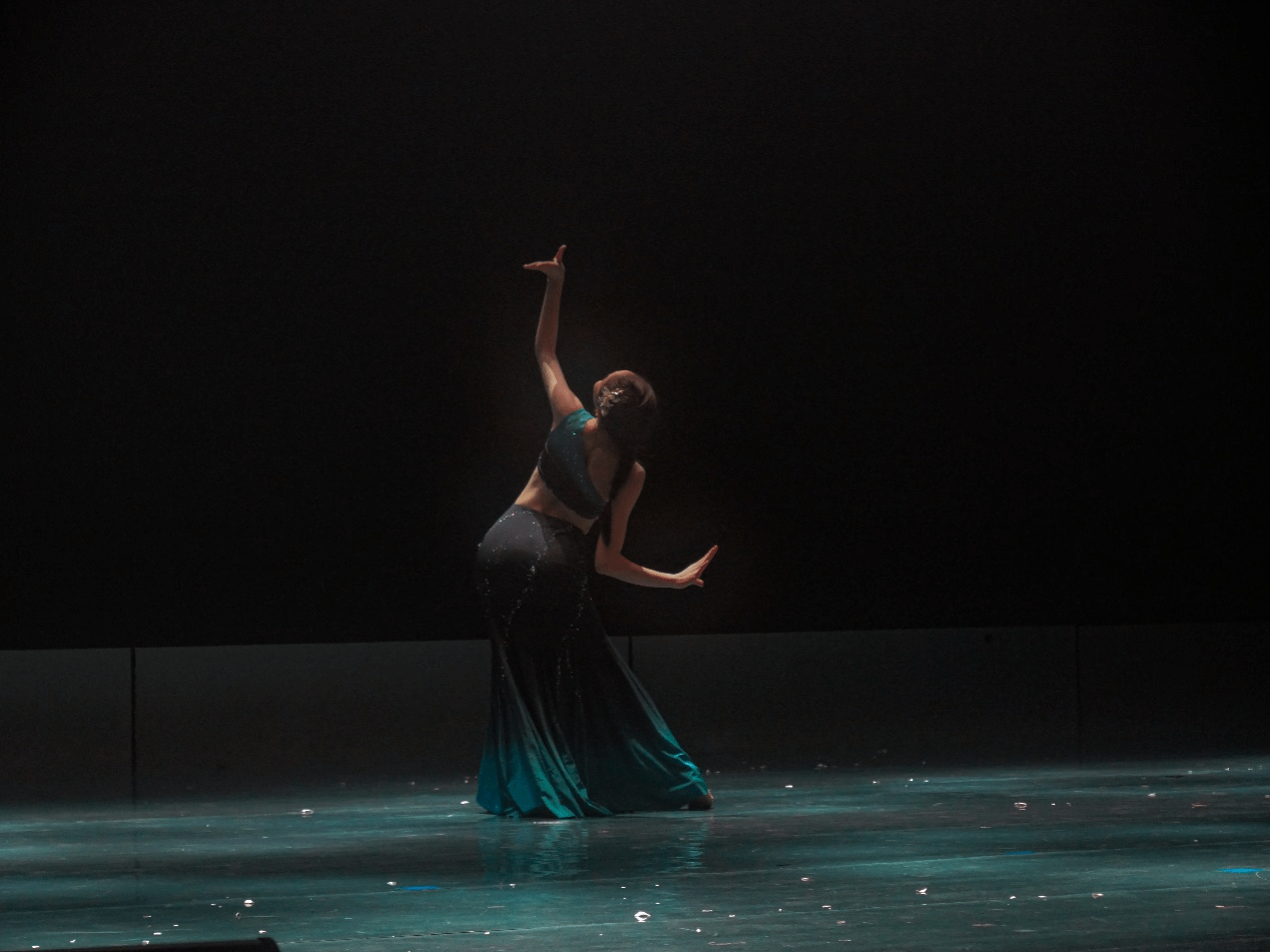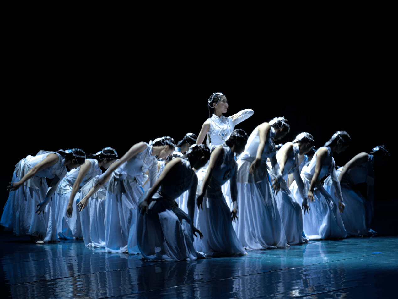 古典舞《蓠歌》与《月出佼人》尽展中国古代女子的古代遗韵之美,舞者的优美身姿如诗如画,恍若再现古代女子的柔美与韵味。舞者们的舞姿既表现出南方大山深处的神秘与幽静,又流露出潺潺流水的柔美与温婉。她们的舞蹈语言,如诗如画,如梦如幻,将观众带入了一个充满诗意与浪漫的古代世界。