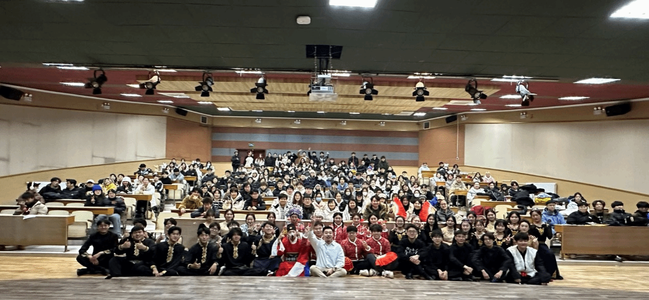 “行过村南与村北,好风处处送秧歌”,在东北二人转《看秧歌》披红带花的氛围中第二篇章“歌舞”开始进行。音理2301班全员齐上带来的维吾尔族舞蹈《晨曦中的玫瑰》、山东“鼓子秧歌”、藏族锅庄舞《鼓乐喧天》展现了不同地域舞蹈特点,随着观众们的叫好声,节目的气氛推向高峰。