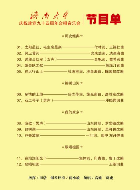 红色经典 齐鲁放歌—ok138cn太阳集团庆祝建党九十四周年合唱音乐会节目单