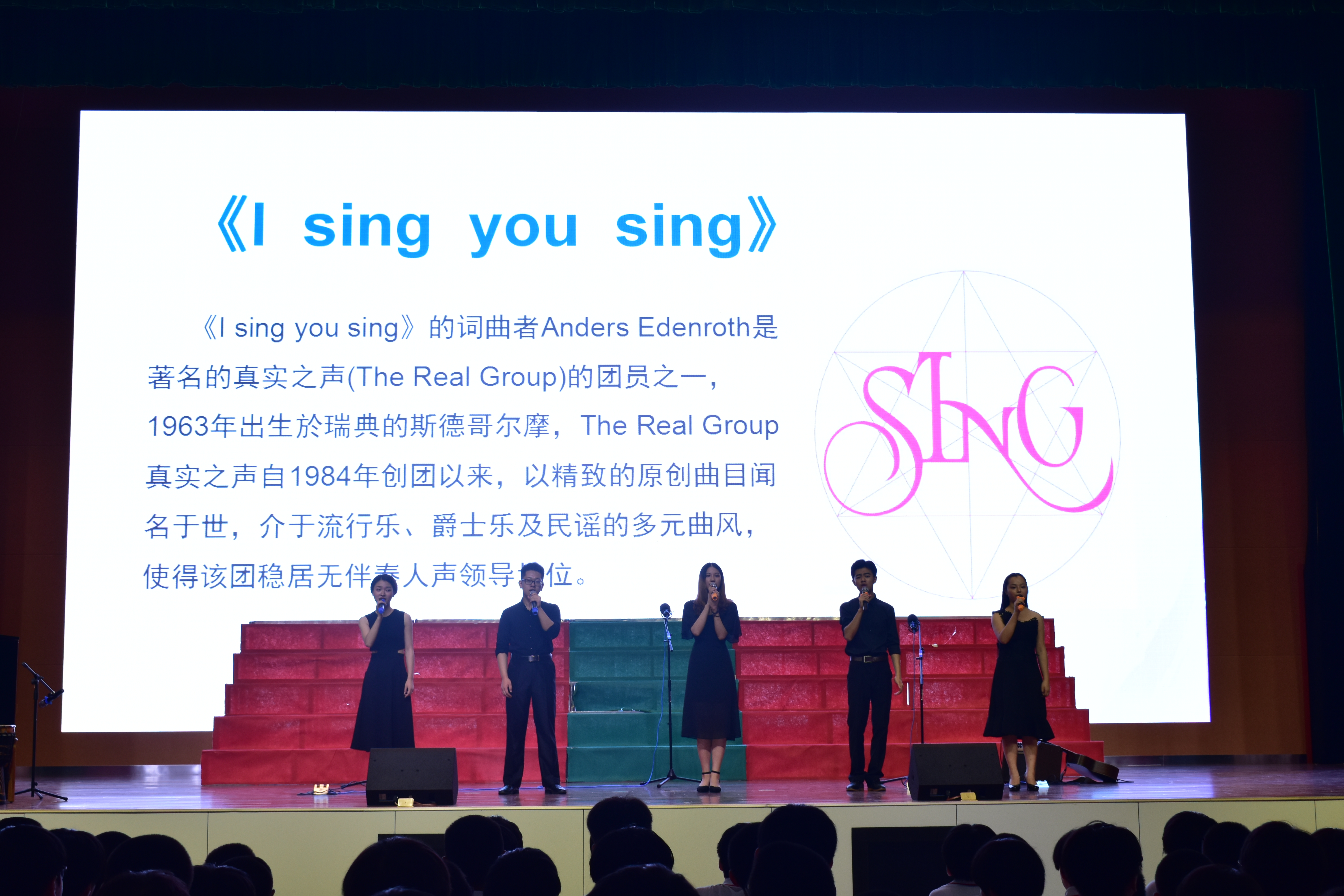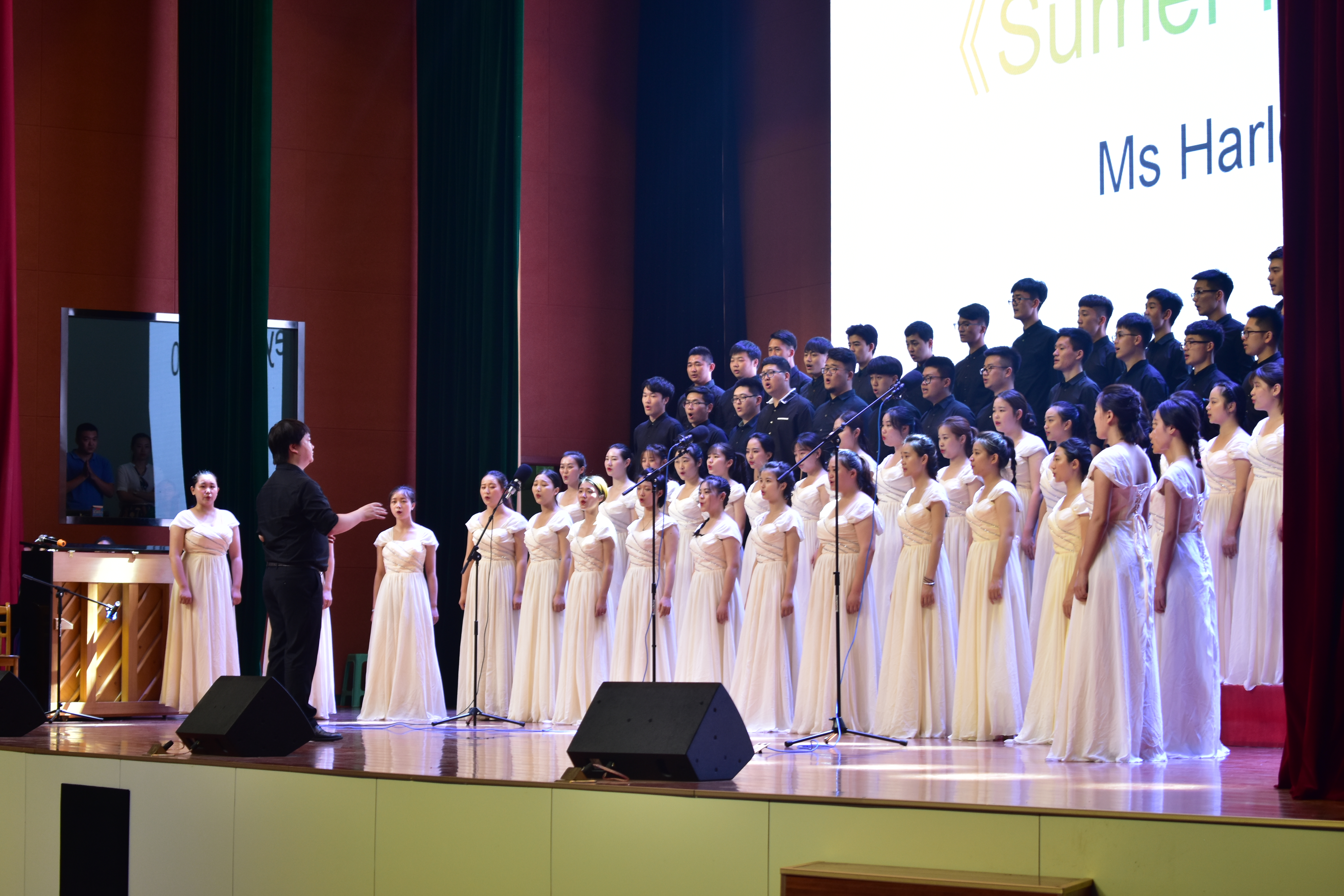 为了呈现最好的演出效果,合唱团的同学们反复推敲每一个和声、反复琢磨每一个动作、反复练习每一个走位。在两场演出中,同学们精彩的表现赢得在场观众的阵阵掌声。演员们热情地与台下的观众互动,台下观众随着演唱情绪的起伏积极配合台上演员。现场氛围深深感染着每一个人。最后,有幸和所在学校合唱团同台演出。演出圆满成功,大家的掌声久久不断。