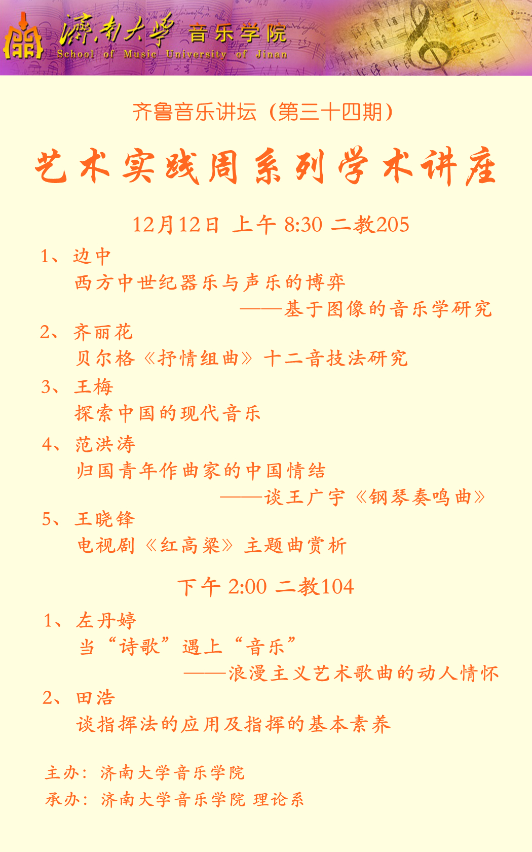 ok138cn太阳集团529艺术实践周之齐鲁音乐讲坛(第三十四期)系列学术讲座通告