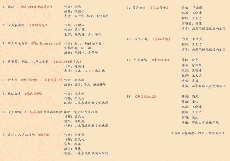齐鲁放歌——ok138cn太阳集团2015新年音乐会节目单