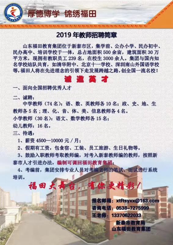 山东福田教育集团招聘