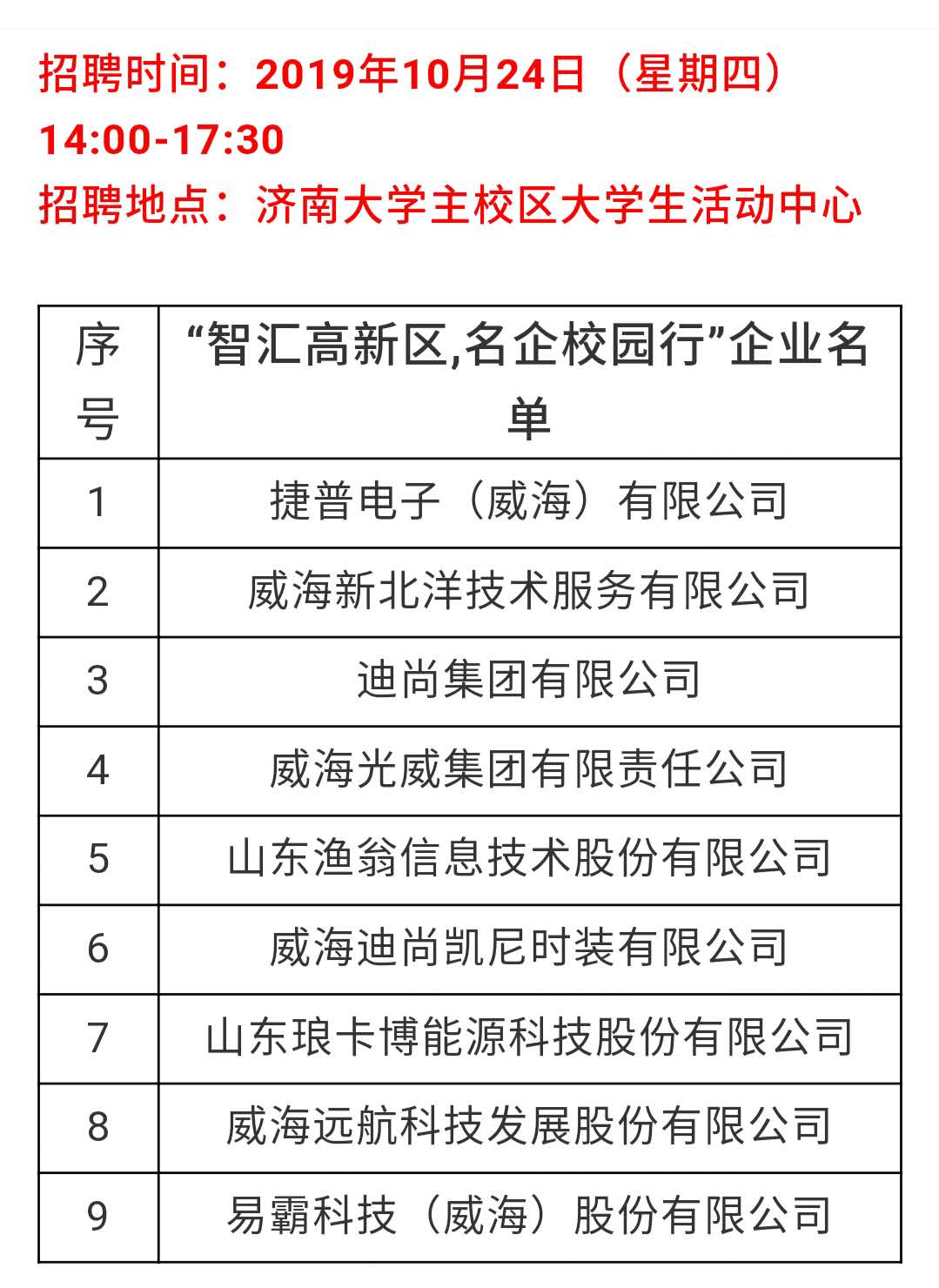 威海市高新区重点企业人才直通车走进ok138cn太阳集团专场招聘