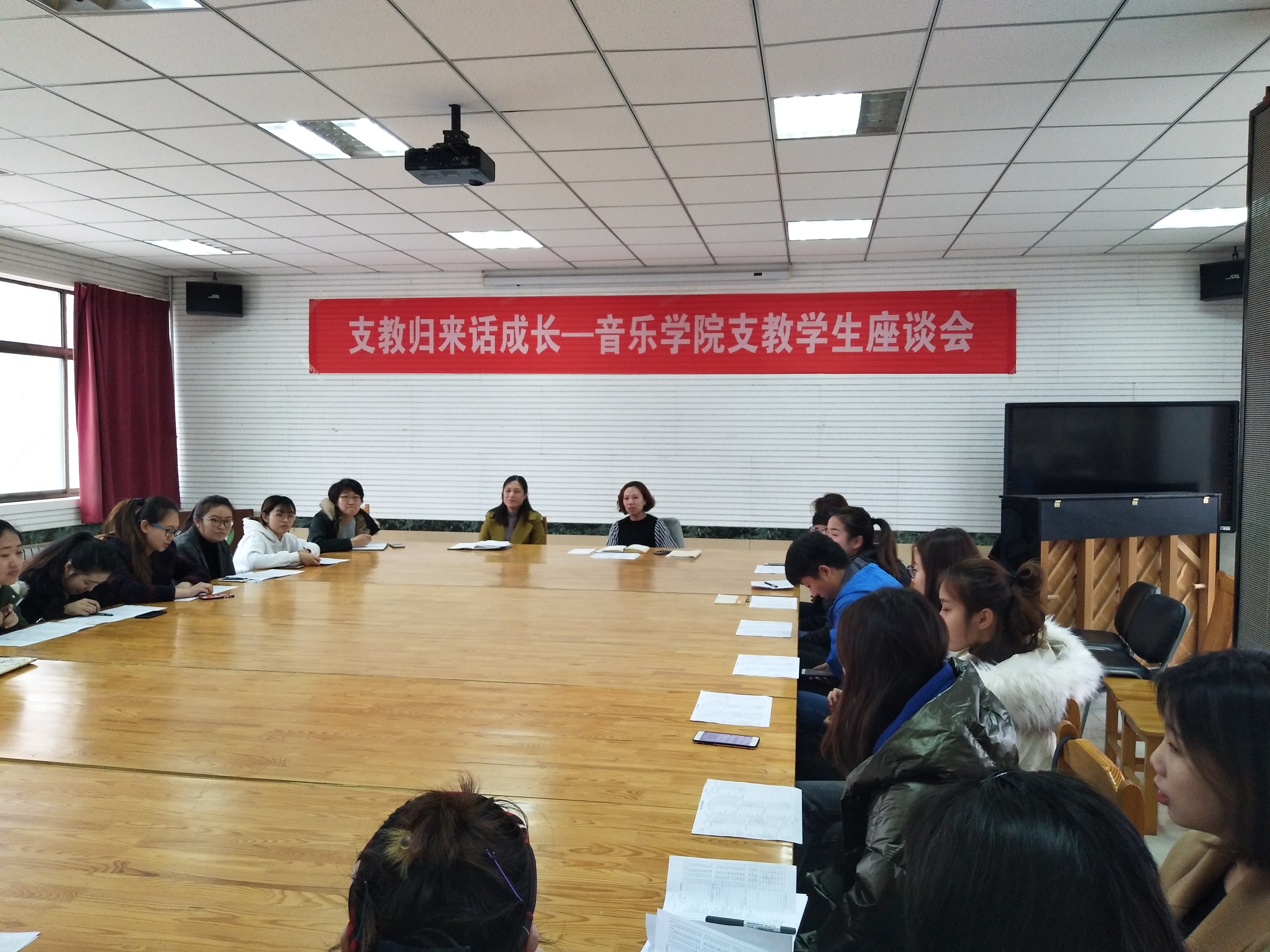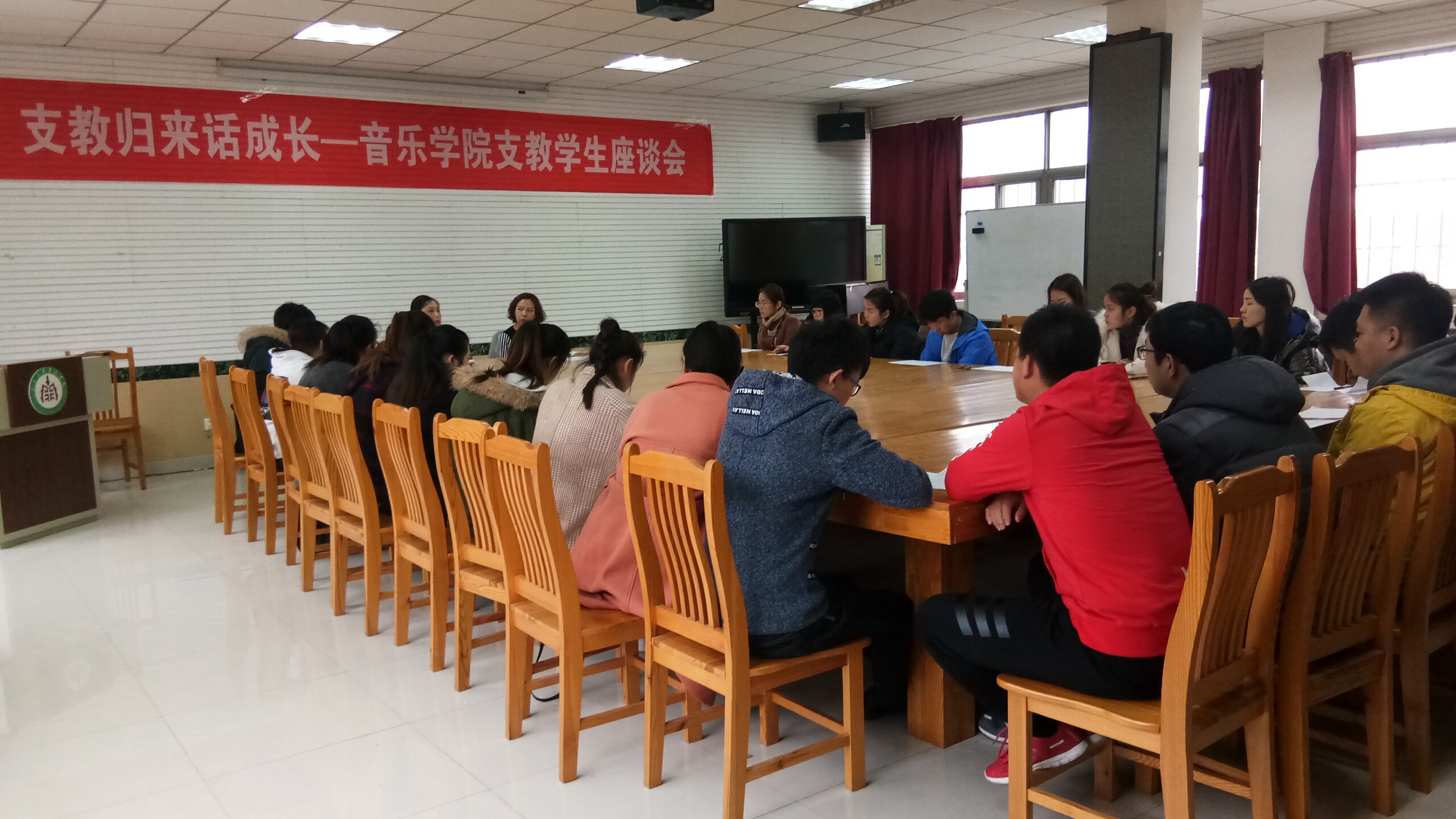 上学期期末,我院赴商河参加实习支教的24名学生圆满完成实习支教任务,顺利返校。3月15日,学院党委副书记崔英静、副院长郑歆与同学们在研讨课教室齐聚一起召开座谈会,欢迎他们凯旋而归,聆听他们讲支教的故事,为他们答疑解惑。