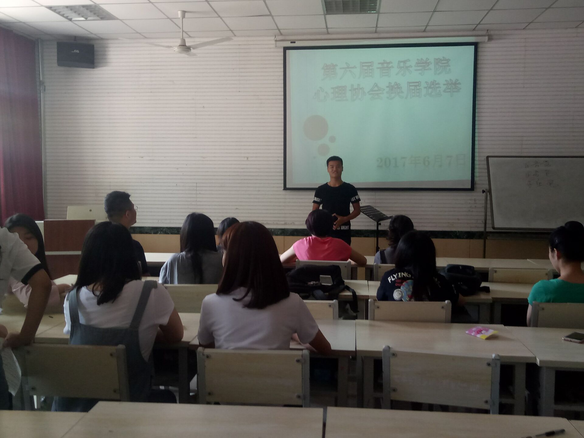 2016年6月7日,ok138cn太阳集团529心理协会在多媒体进行了ok138cn太阳集团529心理协会换届选举大会。会议由主席张雅迪主持,宋莉璐老师应邀参加。